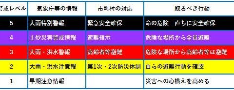 これは内閣府の「避難情報に関するガイドライン」に基づく5段階の警戒レベルに応じて