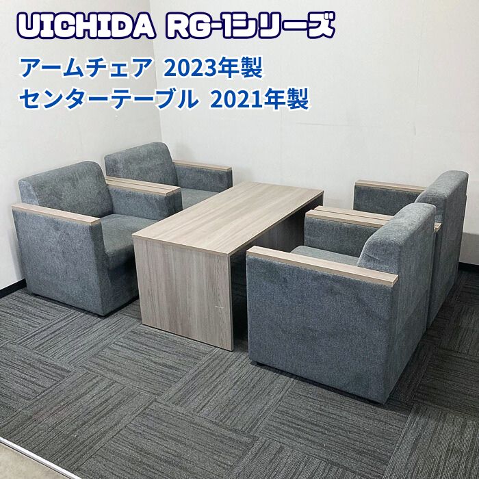 内田洋行 RG-1シリーズ オープンスペース応接 ソファ:ダークグレイ/テーブル:グラディスエルムモカ 中古
