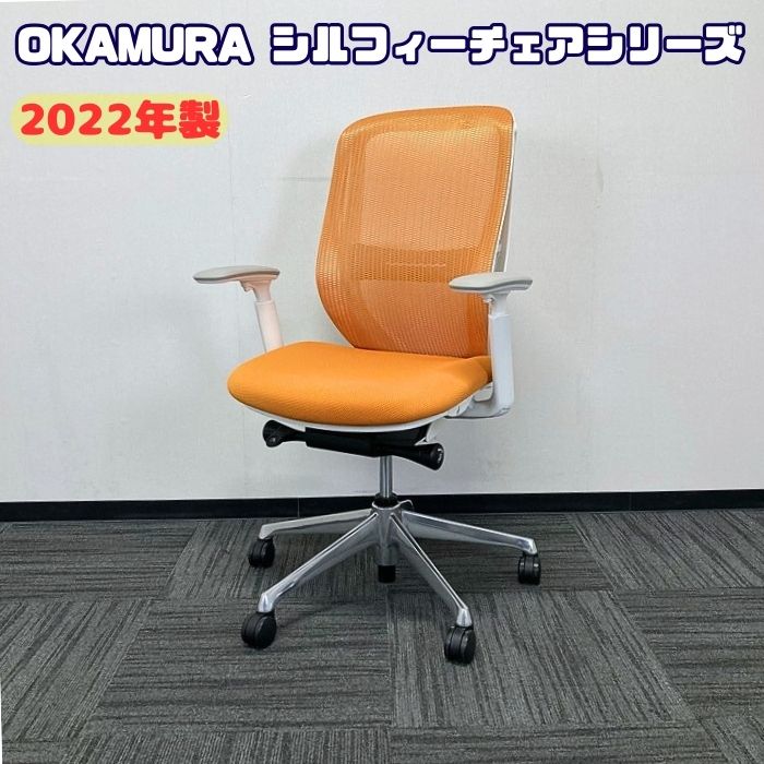オカムラ シルフィーチェアシリーズ オフィスシーティング[アジャストアーム]C685BZ FMR8 ハイバック ランバーサポート付 背座:オレンジ/フレーム:ホワイト 2022年製 中古