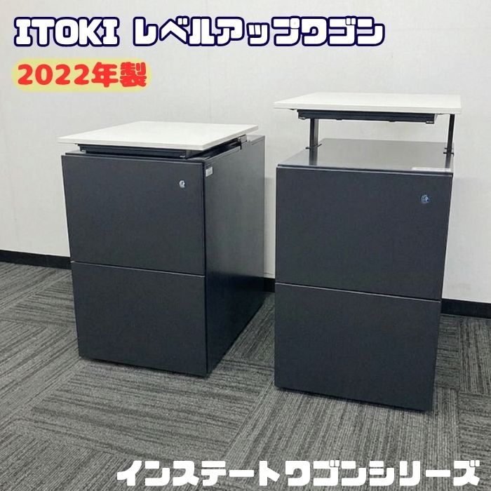 イトーキ インステートワゴンシリーズ レベルアップワゴン[A4・2段] JM-046MEC-T161 W400×D590×H650~740 天板:アッシュドパインL/前板:サテンブラック/本体:オフブラック 2022年製 中古 ➉