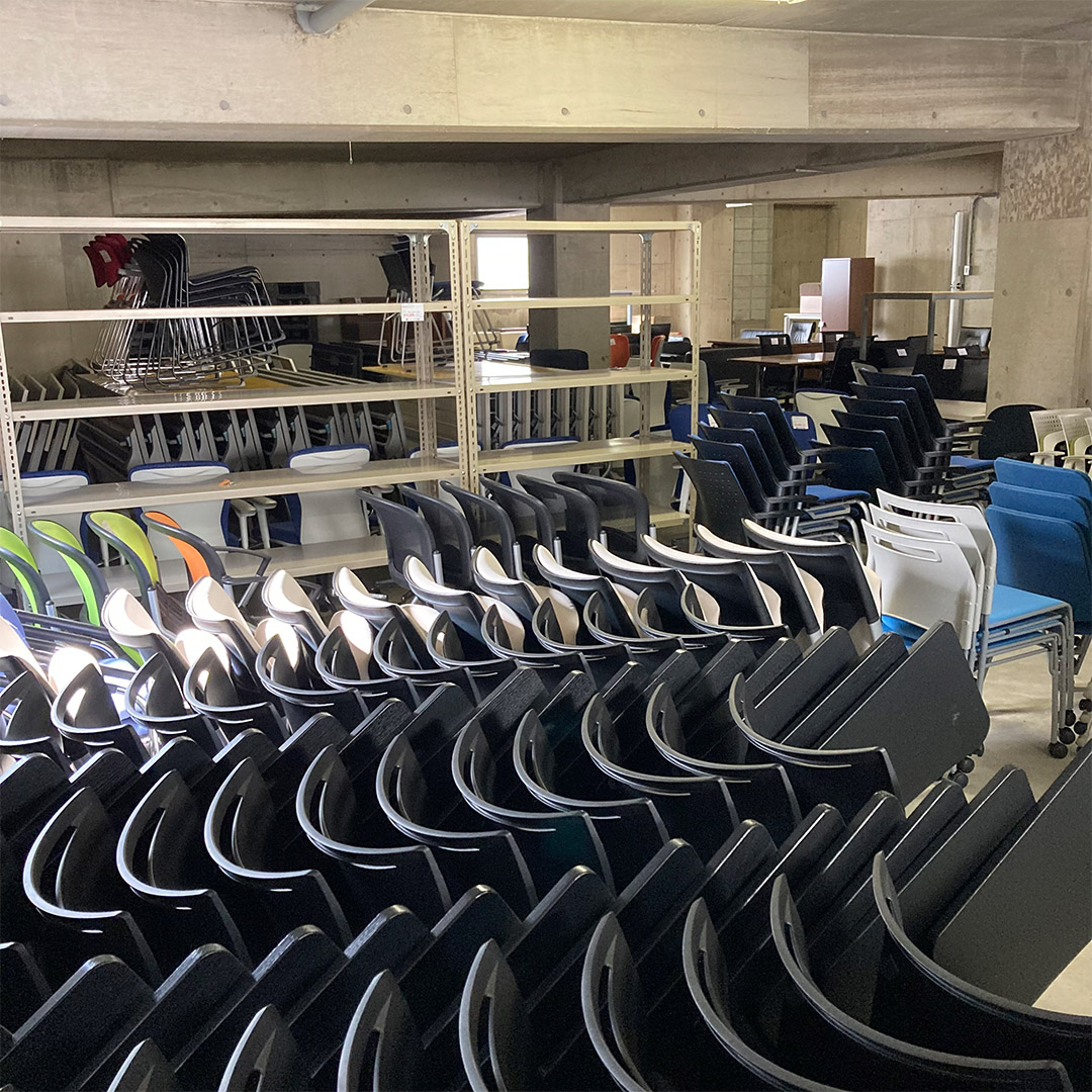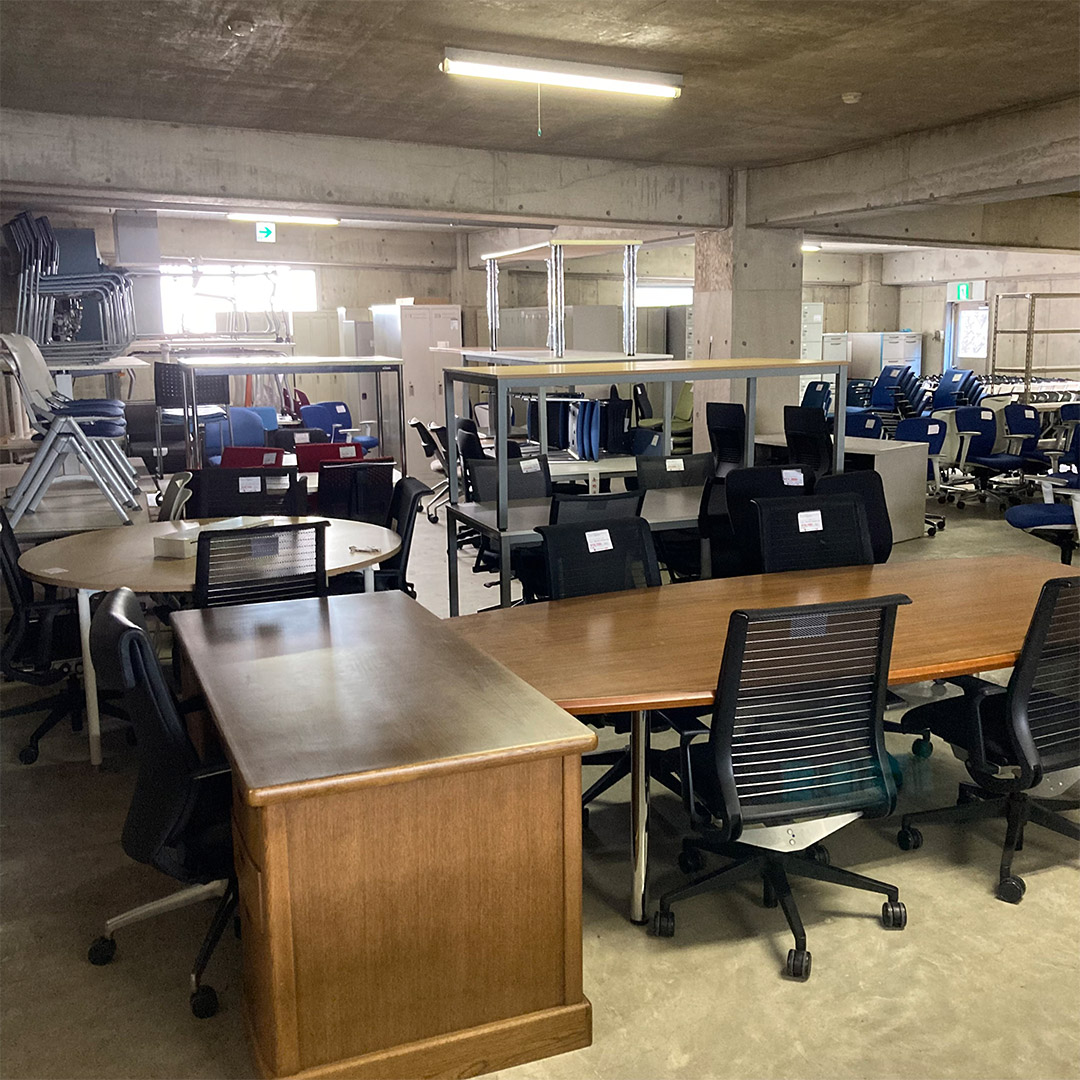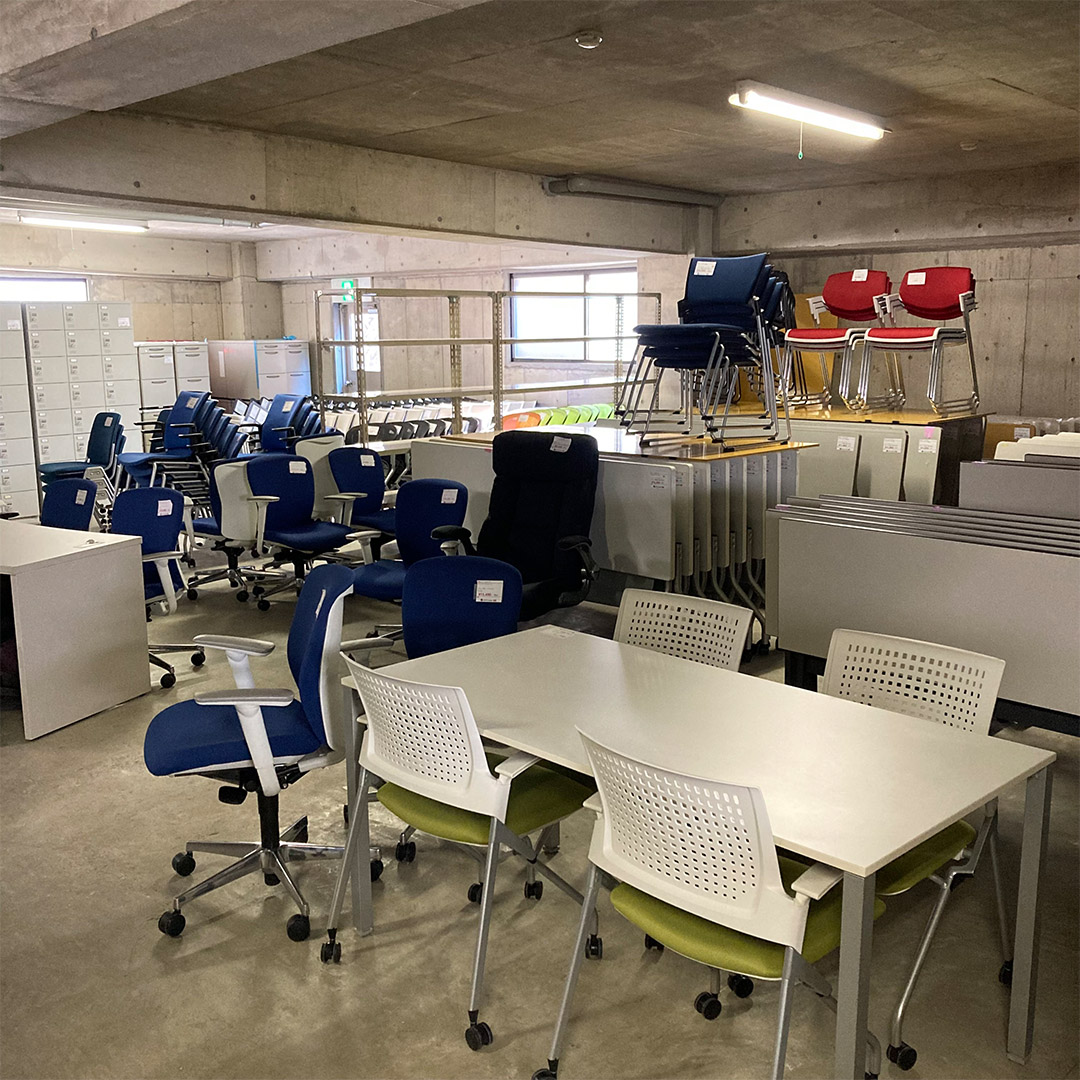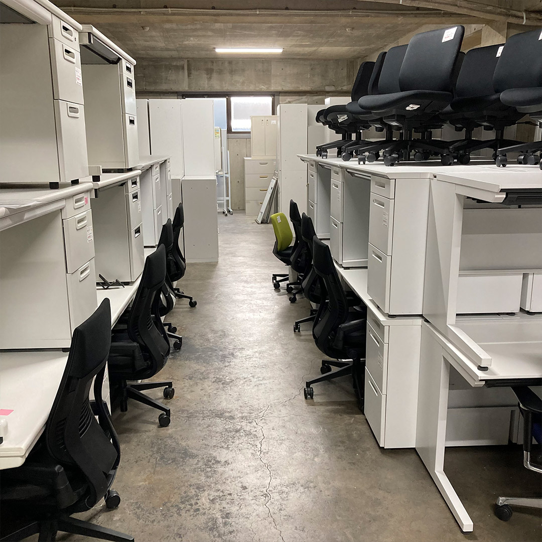 弊社は資源ゴミを減らす為、使用されなくなったオフィス家具のメンテナンスを行い再度、必用とされるお客様へお届けしております。