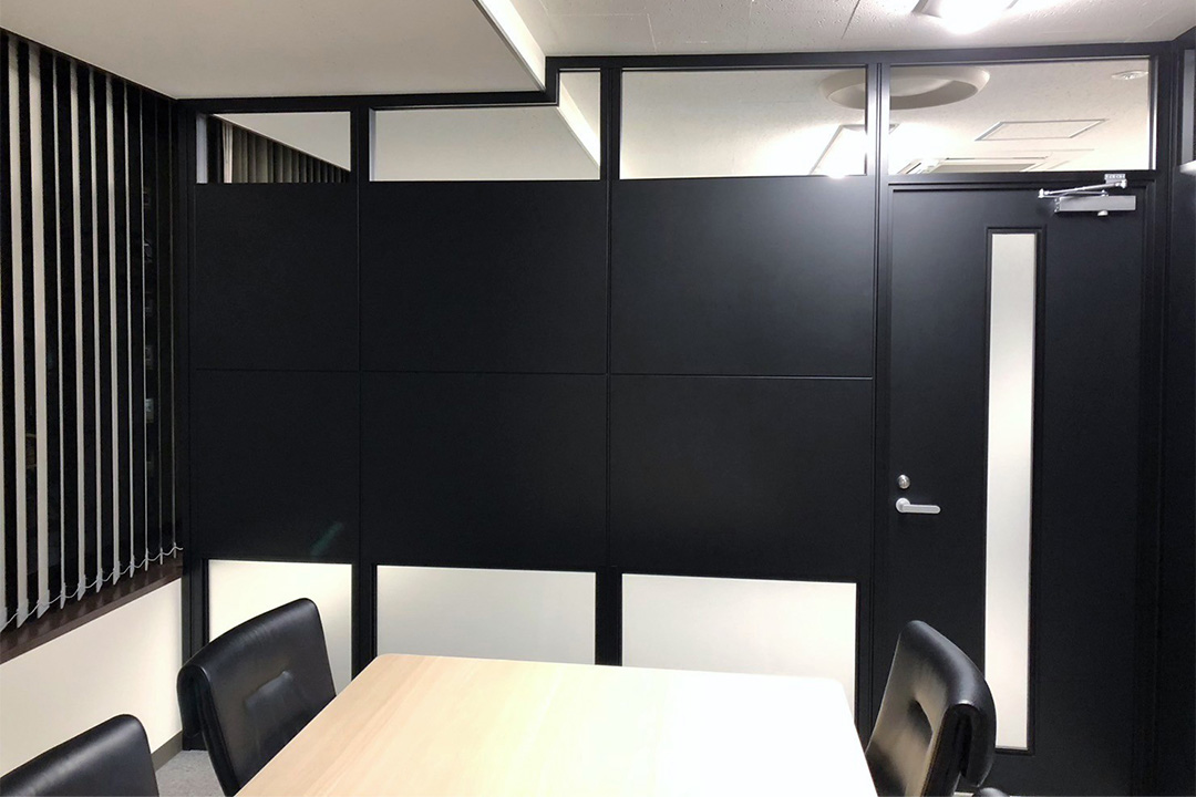 間仕切り工事は、天井や床に固定したり、パネルのカットなど工事が発生します。ご希望のサイズに合わせて加工が可能なため、イメージ通りの仕切りをレイアウト可能です。