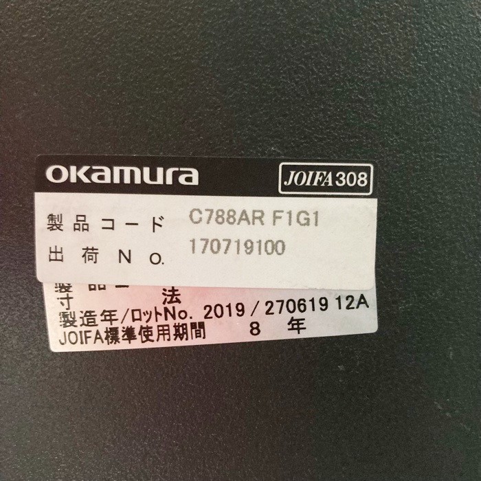 オカムラ フィノラチェア C788AR F1G1 アジャストアーム ハンガー付き ブラック 2019年製 中古
