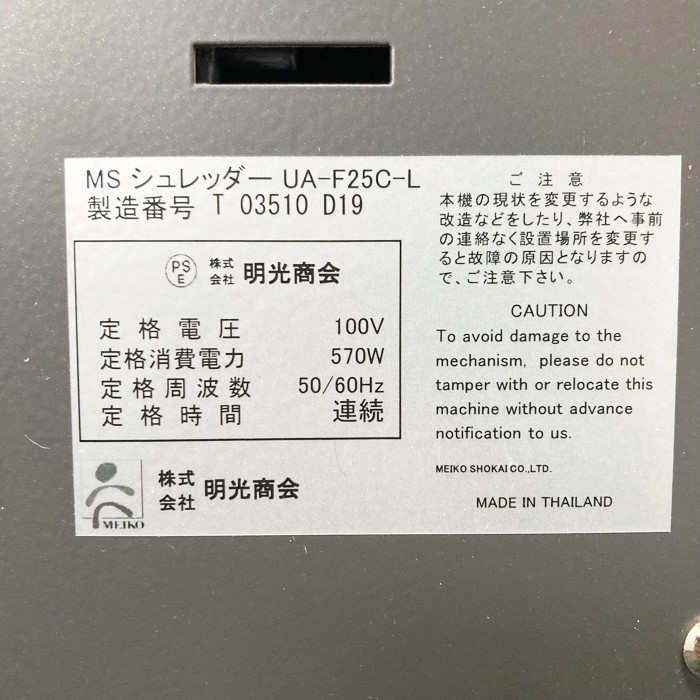 明光商会 MSシュレッダー UA-F25C-L W500×D500×H850 質量:87kg ホワイト 2019年製 中古 ⑩
