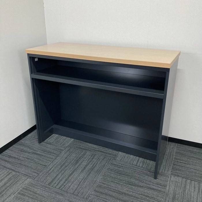 イトーキ NJカウンターシリーズ ハイカウンター NJN-259K-98T2 W1200×D500×H950 天板/フロントパネル:ファインウォールナット 本体:オフブラック 中古
