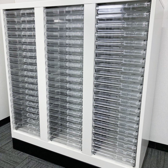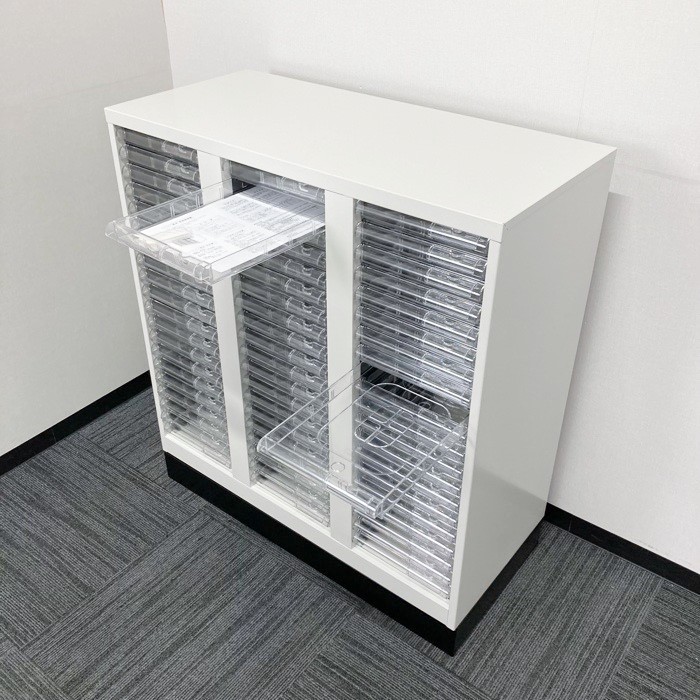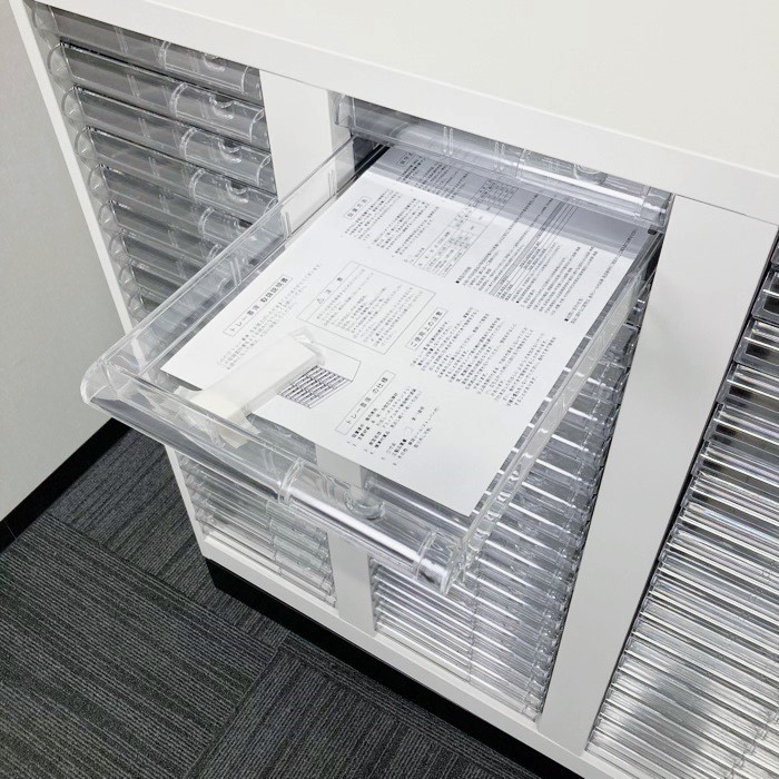 浅型トレイが60個付いており書類や伝票の小分けや整理におすすめです。
