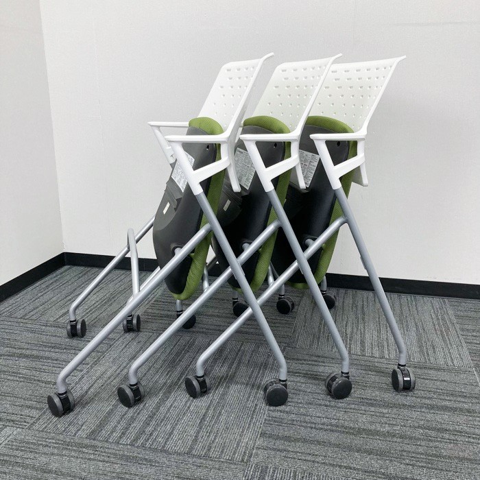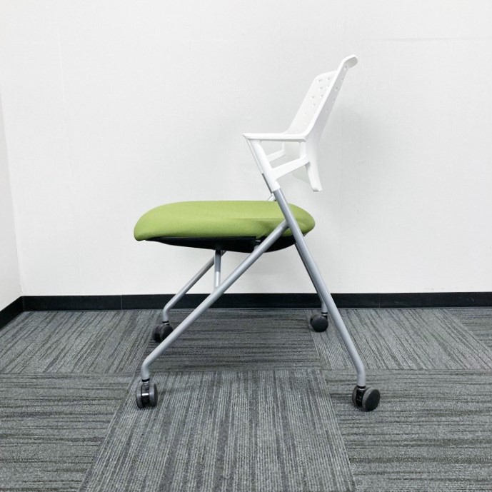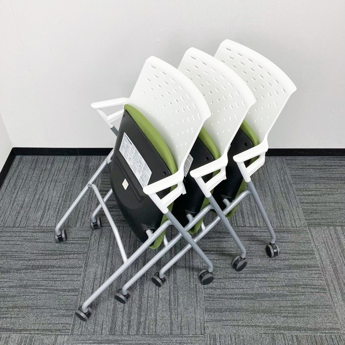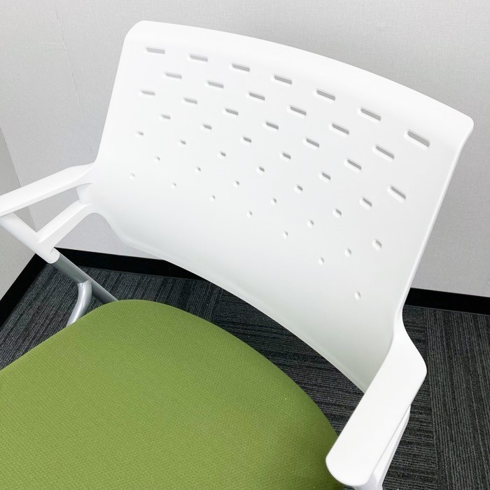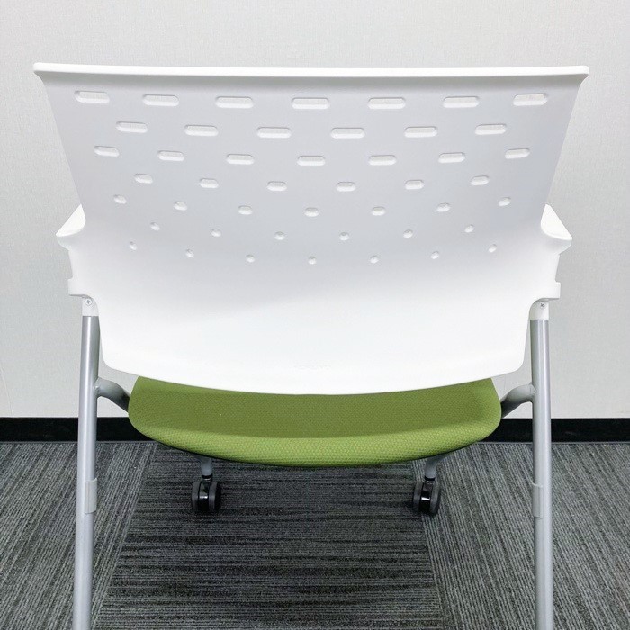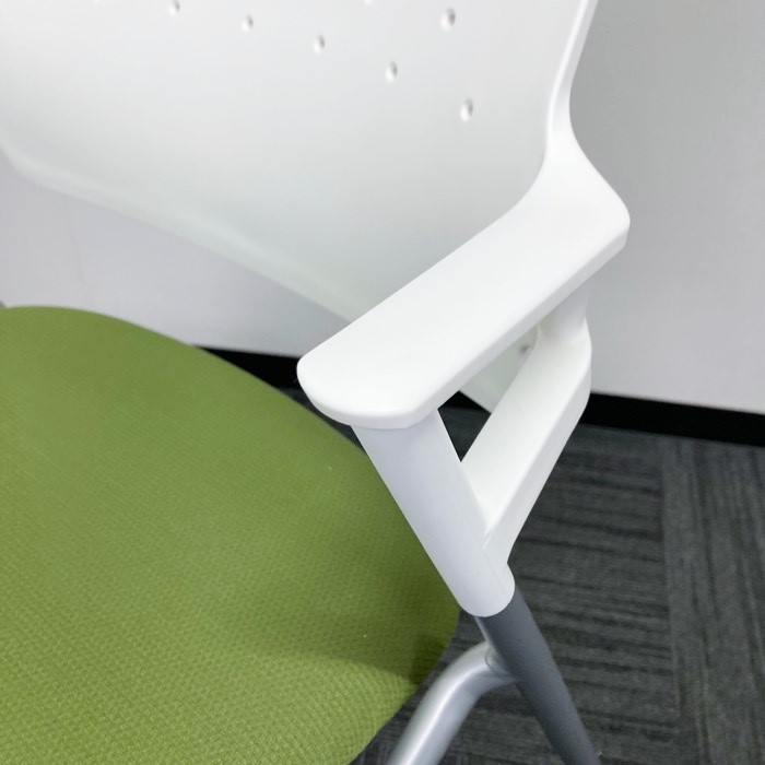 コクヨ ピエガシリーズ 水平スタックチェア CK-720PWGQ5-W 背:ホワイトシェル/座:ライトオリーブ/脚:シルバー 2019年製 中古 ⑳