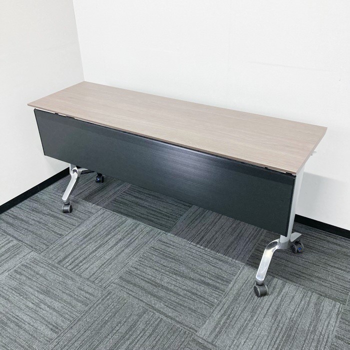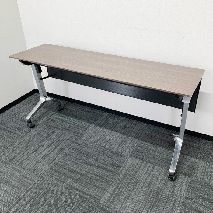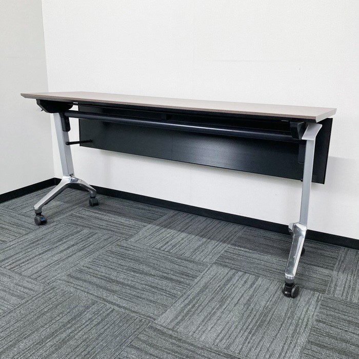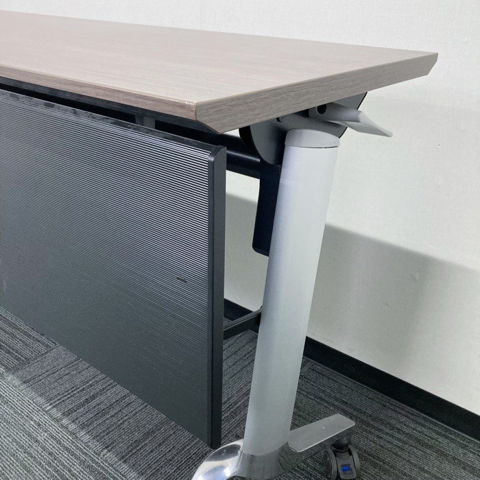 コクヨ コンフェストシリーズ 平行スタックテーブル KTT-1302B MG5 W1500×D450×720 幕板付き 天板:アッシュブラウン/脚:シルバー 2015年製 中古