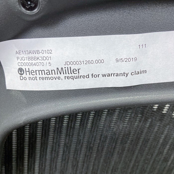 ハーマンミラー アーロンチェア AE113AWB-0102 Bサイズ フル機能 ポスチャーフィット グラファイトカラー 2019年製 中古