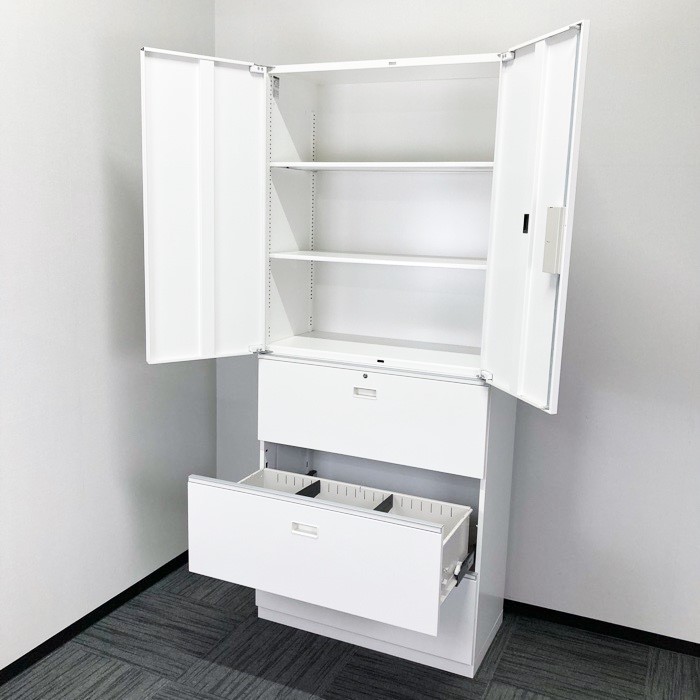 イトーキ シンラインシリーズ 両開き書庫+3段ラテラル W900×D450×H2136 ホワイト 中古 ⑩