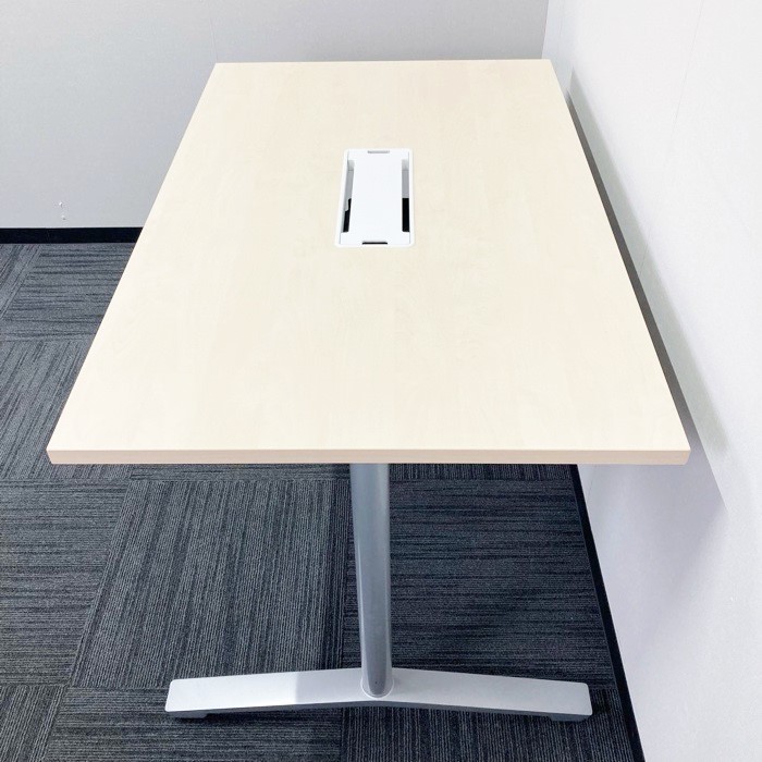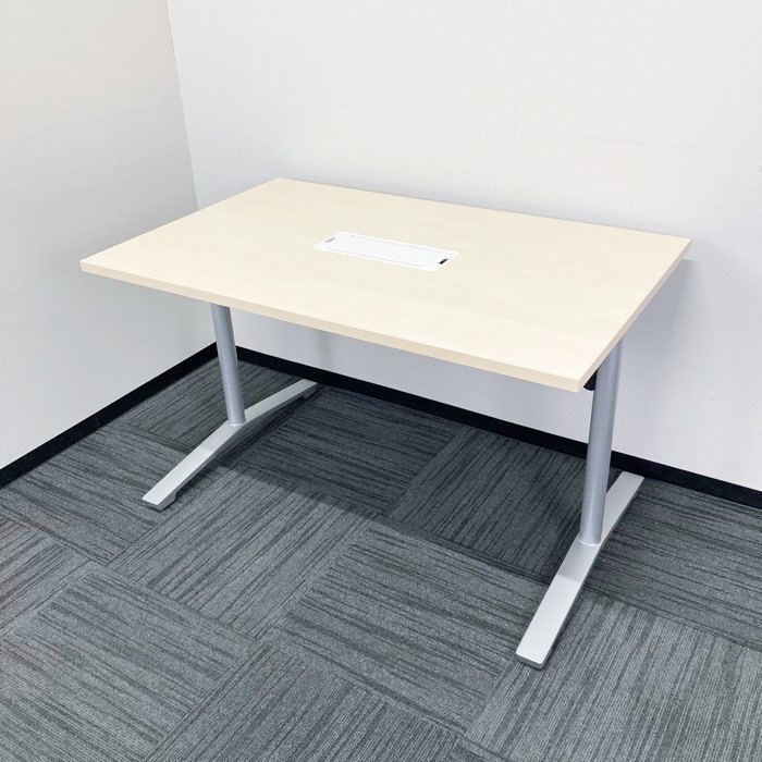 コクヨ ビエナシリーズ ミーティングテーブル MTT-V127BM10 W1200×D750×H720 配線ボックス付き 天板:ホワイトナチュラル/脚:フラットシルバー 2018年製 中古
