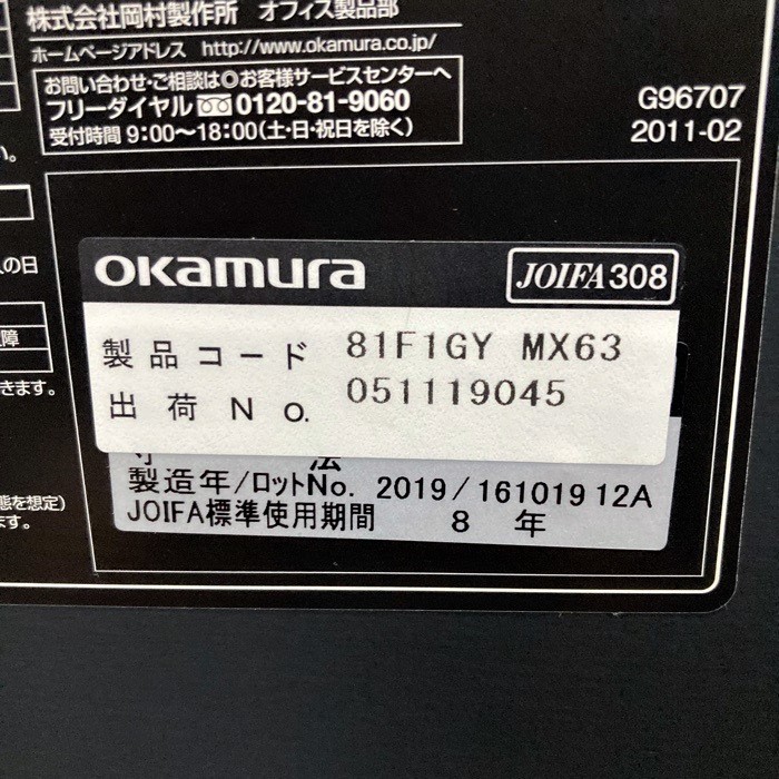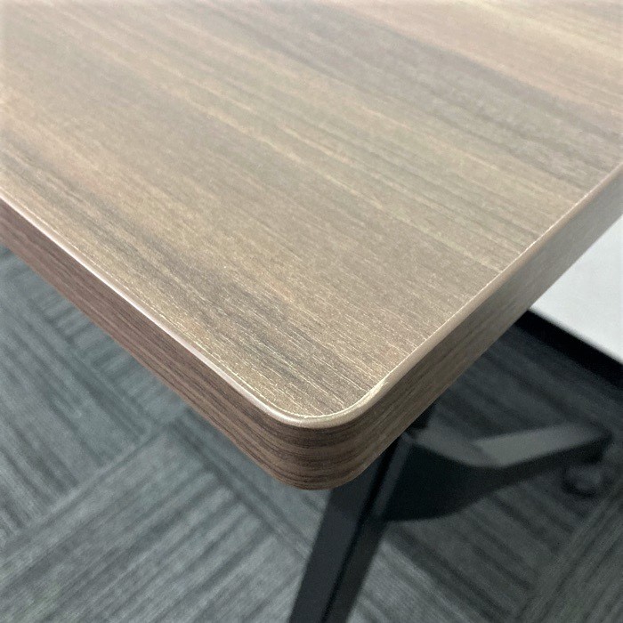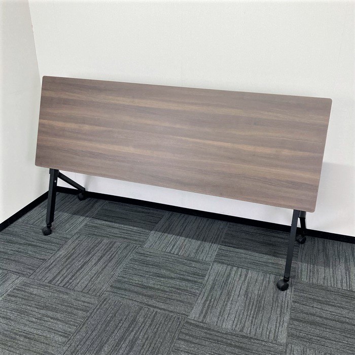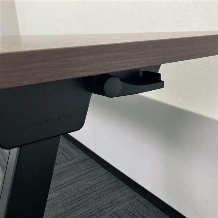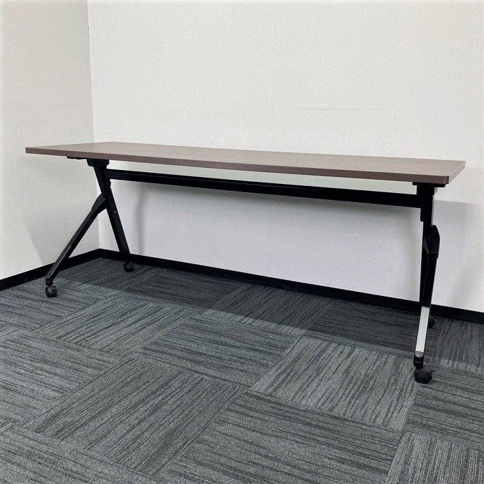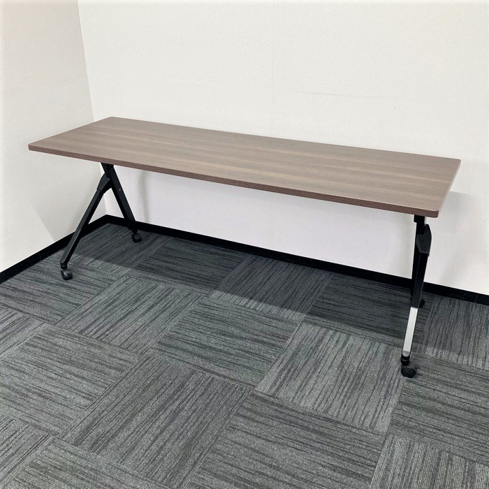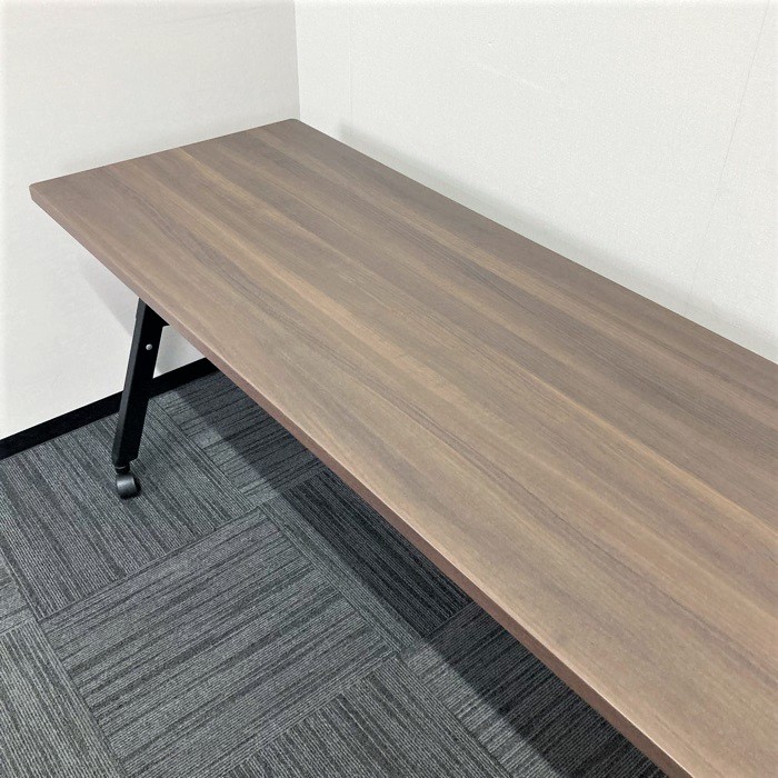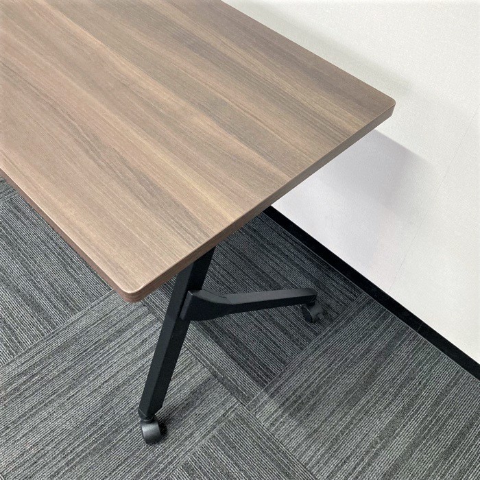 オカムラ フラプターシリーズ 平行スタックテーブル幕板なし 81F1GY W1800×D600×H720 天板:プライズウッドダーク/脚:ブラック 2019年製 中古 ⑩