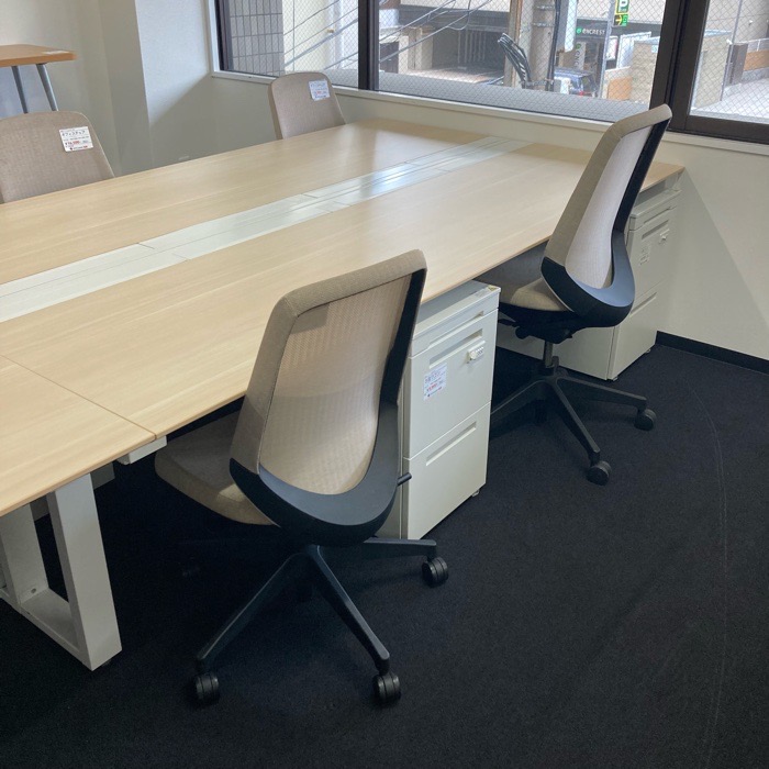 内田洋行 アルセナデスクシステムシリーズ フリーアドレスデスク W4800×D1465×H720 天板:ライトファインウッド/本体:オフホワイト 2020年製 中古 ※SALE品
