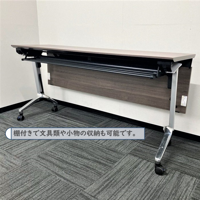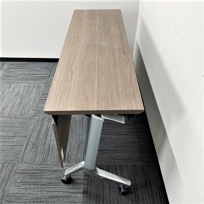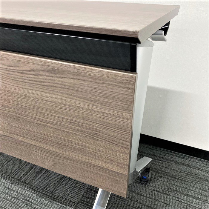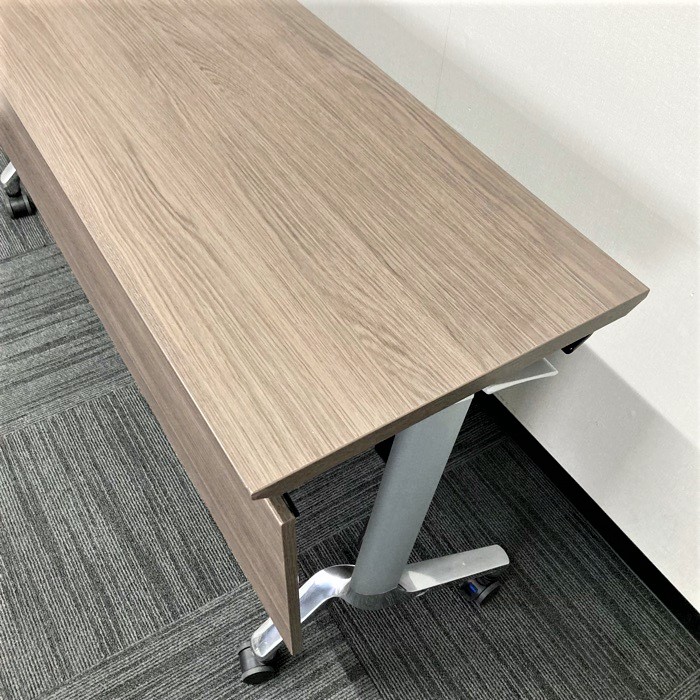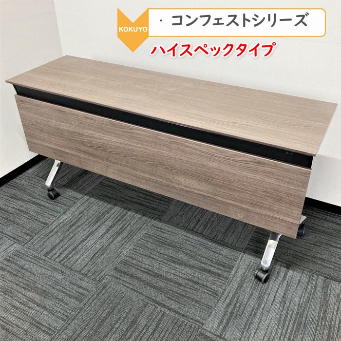 コクヨ コンフェストシリーズ 平行スタックテーブル KTT-1302B MG5 W1500×D450×720 幕板付き 天板:アッシュブラウン/脚:シルバー 2016年製 中古