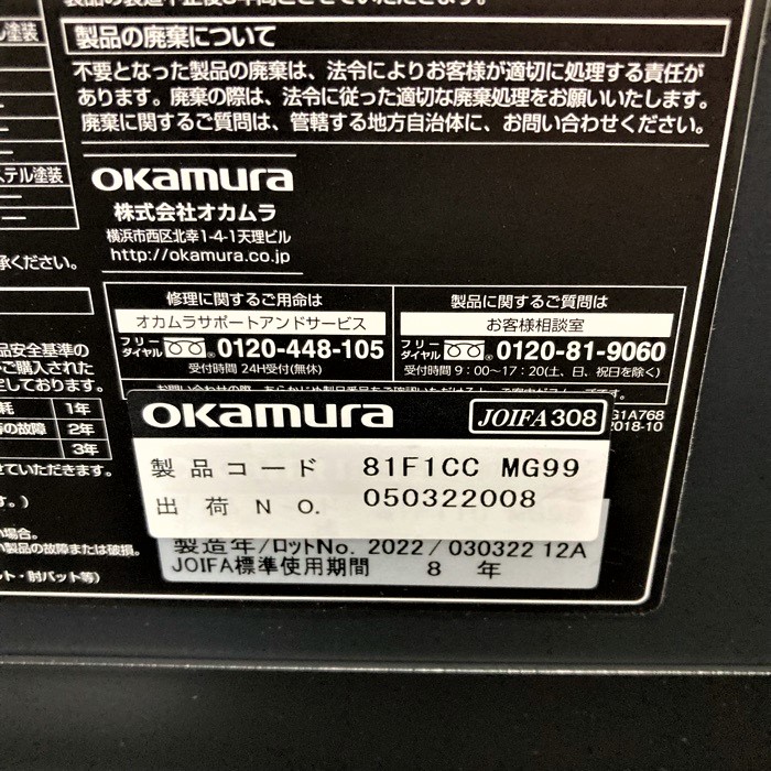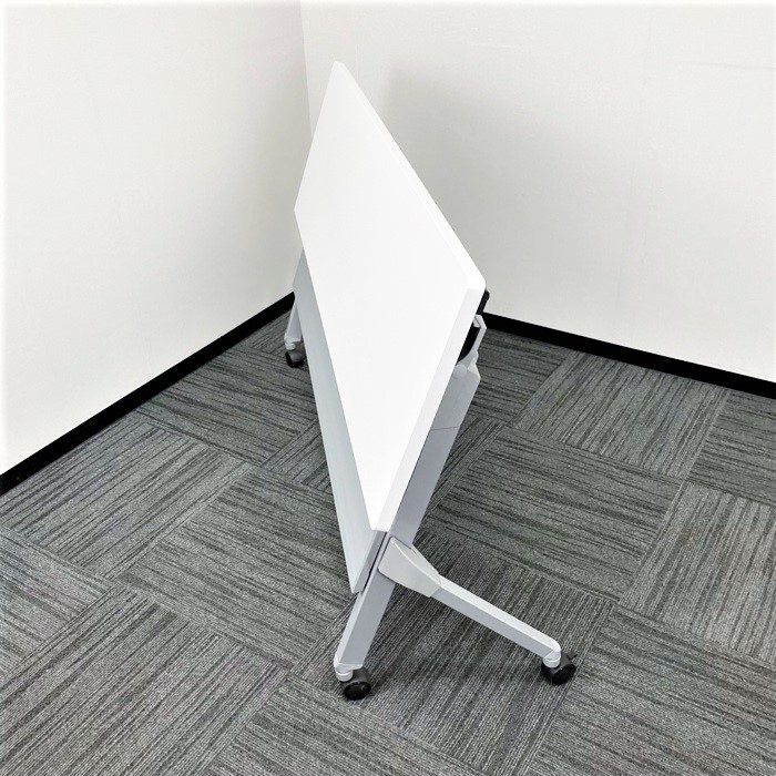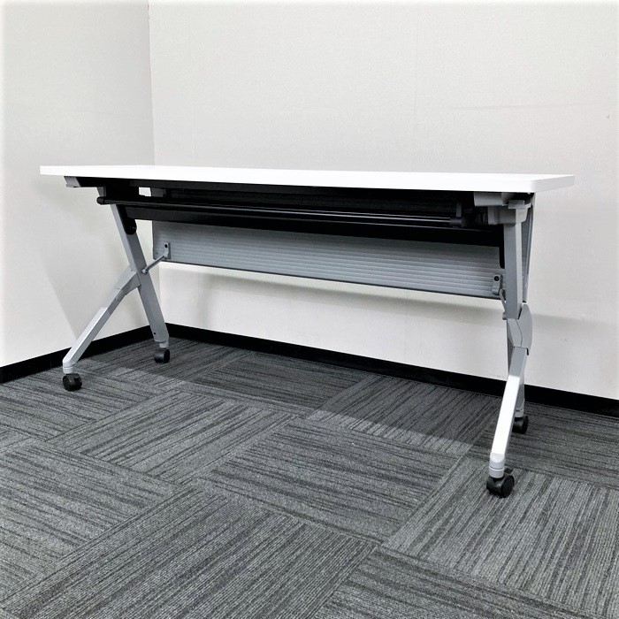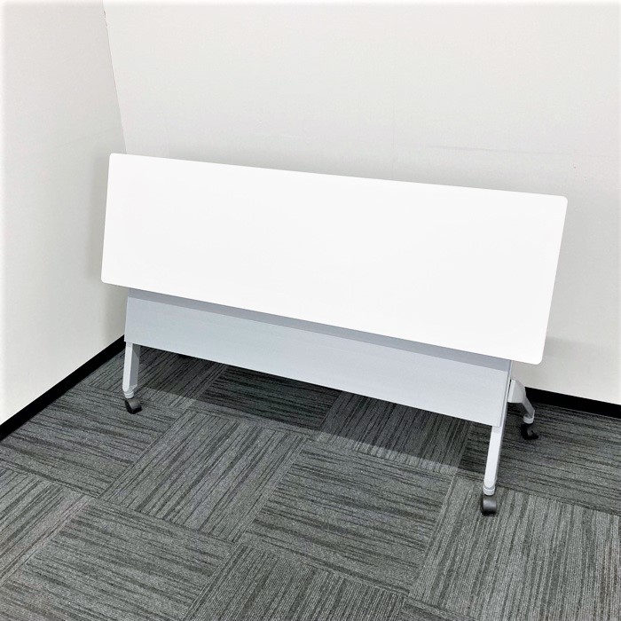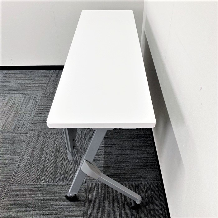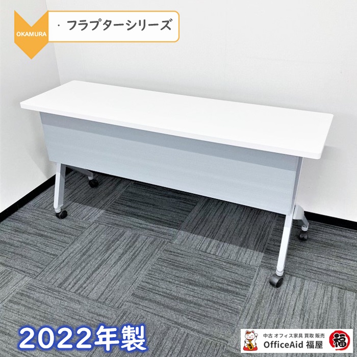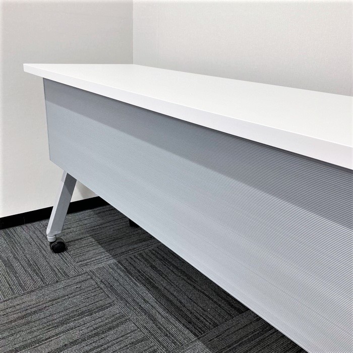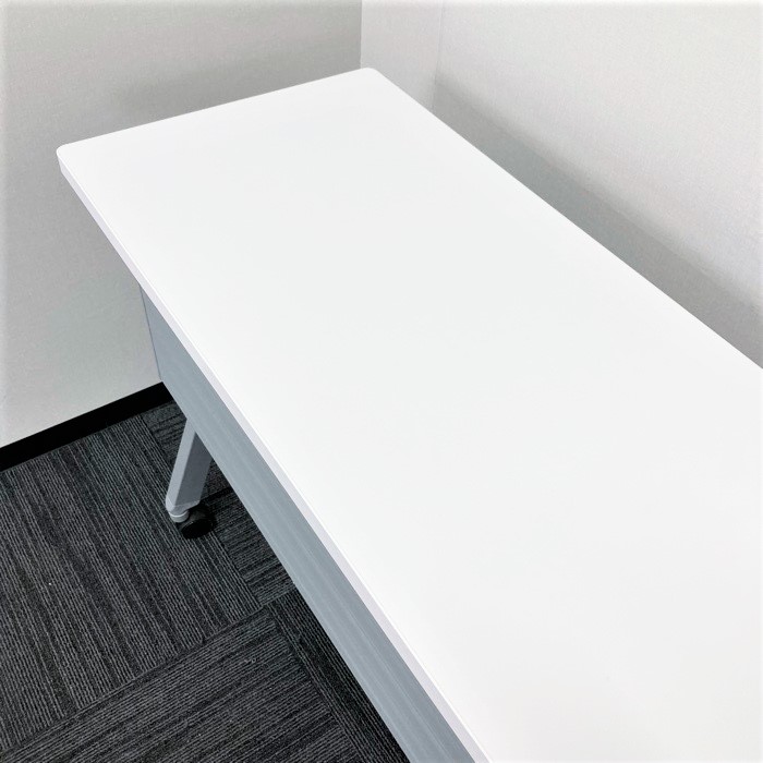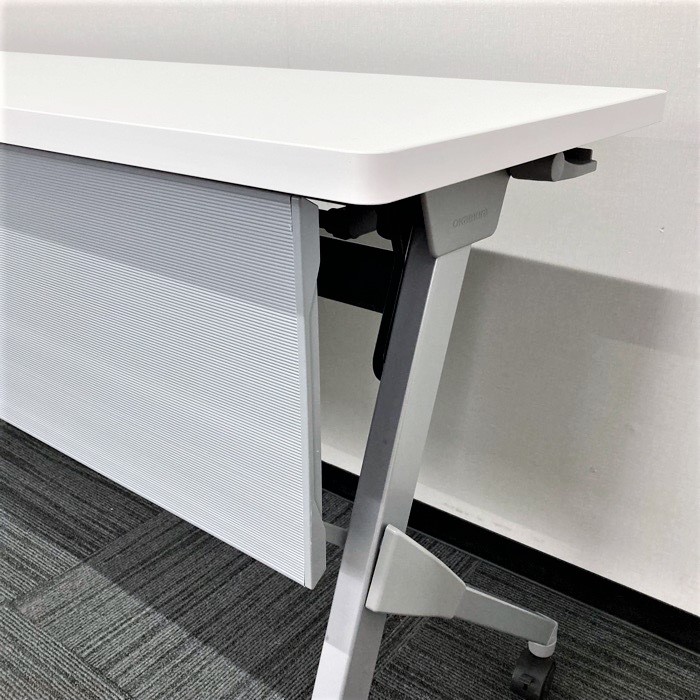 オカムラ フラプターシリーズ 平行スタックテーブル 81F1CC MG99 W1500×D450×H720 天板:ホワイト/脚:シルバー 2022年製 中古 ⑩
