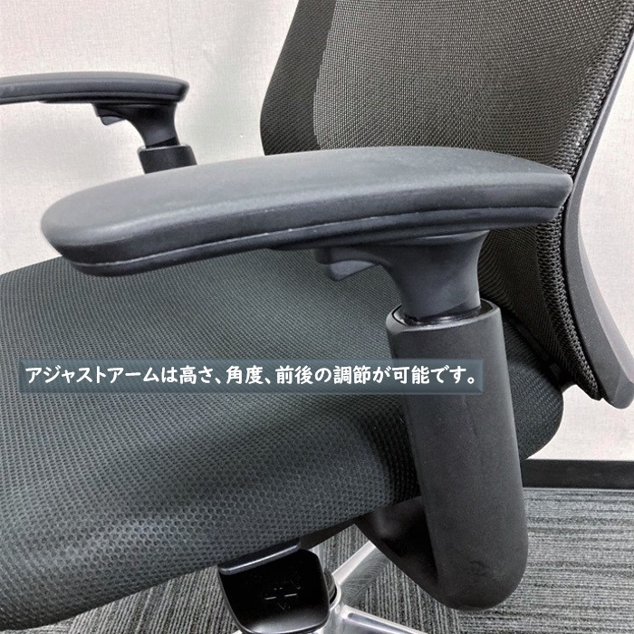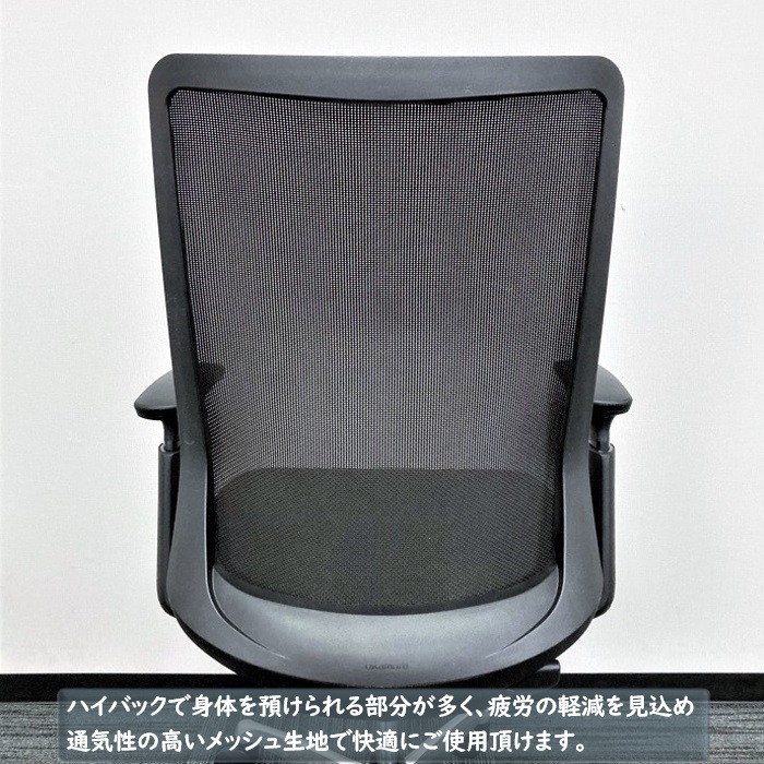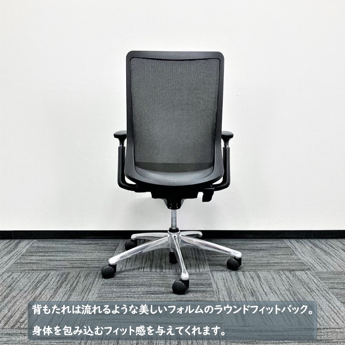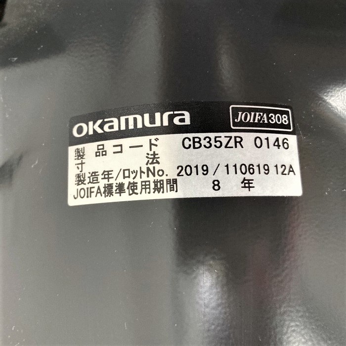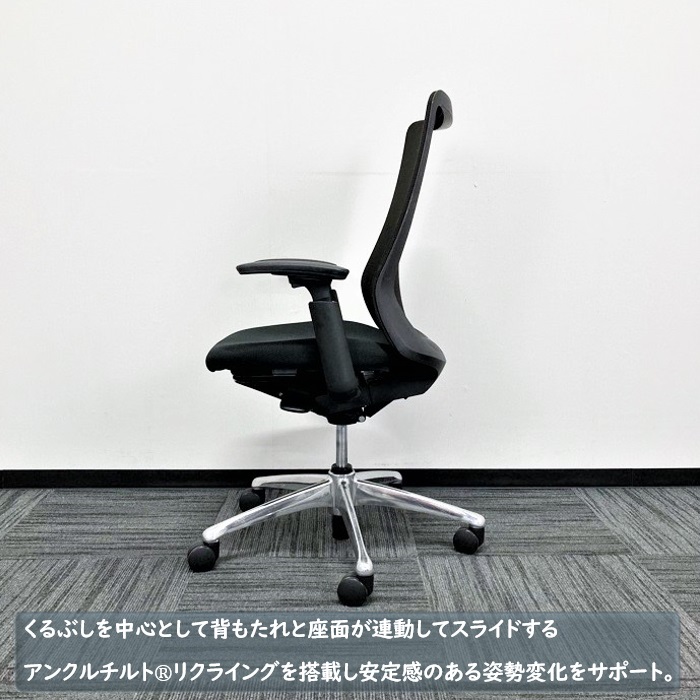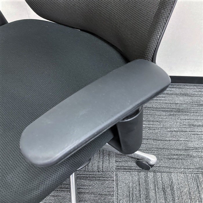 オカムラ フルーエントチェアシリーズ オフィスシーティング CB35ZR アジャストアーム付き ハイバック ブラック 2019年製 中古 ⑩