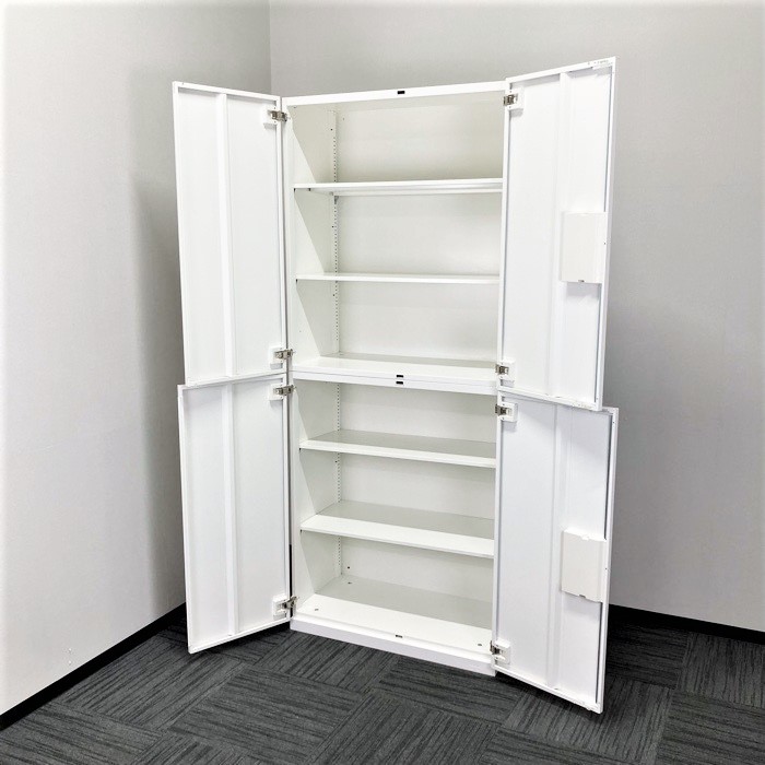 オカムラ レクトラインシリーズ 両開き書庫+両開き書庫 4B313Y ZA75 W900×D450×H2150 ネオホワイト 2019年製 中古