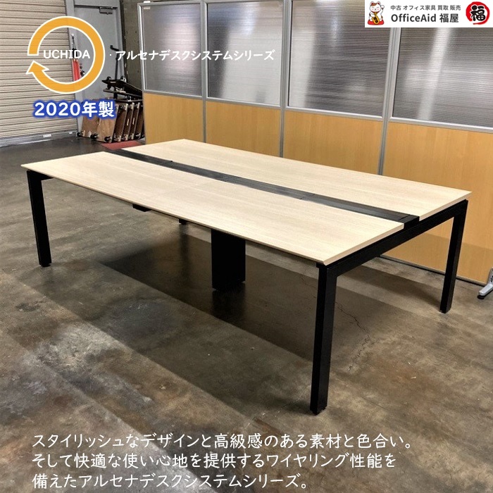 内田洋行 アルセナデスクシステムシリーズ フリーアドレスデスク W2400×D1400×H720 天板:ライトファインウッド/本体:エルブラック 2020年製 中古 ⑩