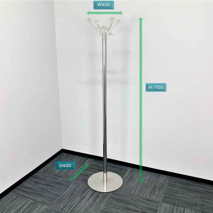 オカムラ コートハンガーシリーズ コートハンガー 4E63CH-B907 W400×D400×H1760 トップ:マットクリア/支柱、ベース:シルバー 中古 ⑳