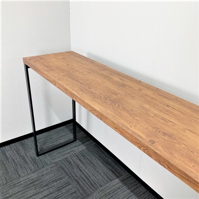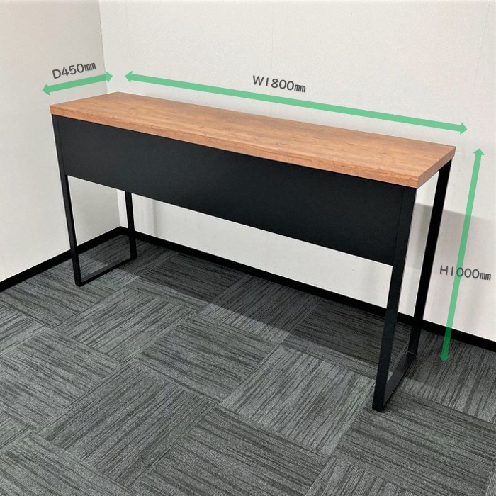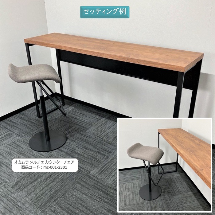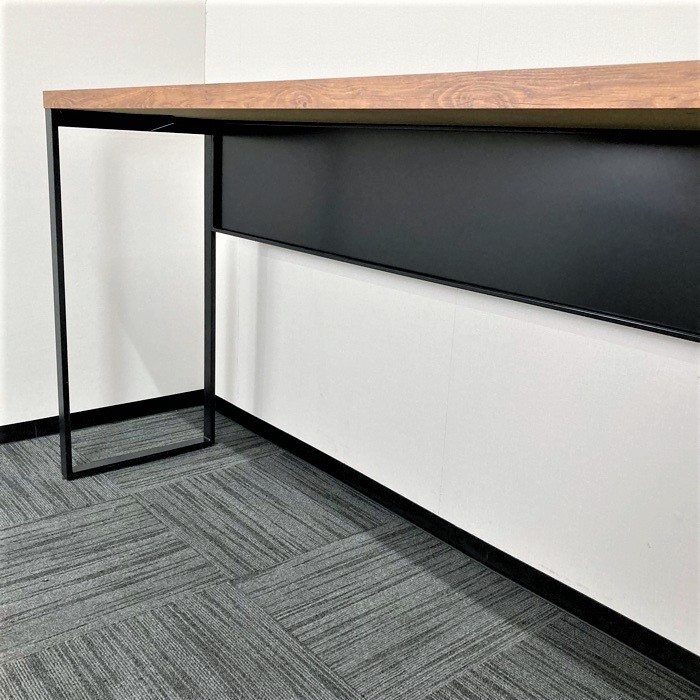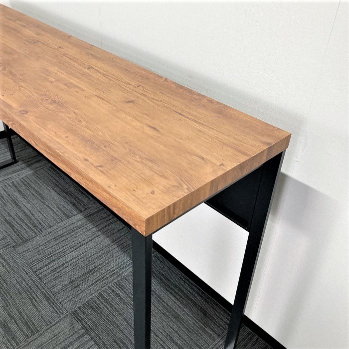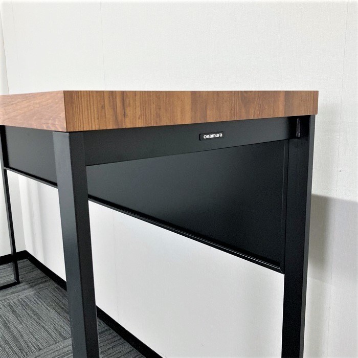 オカムラ アルトピアッツァシリーズ 片面カウンターテーブル MB61A2A MW73 W1800×D450×H1000 天板:ラスティックパイン/本体:ブラック 2019年製 中古 ⑩
