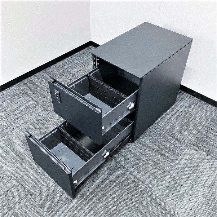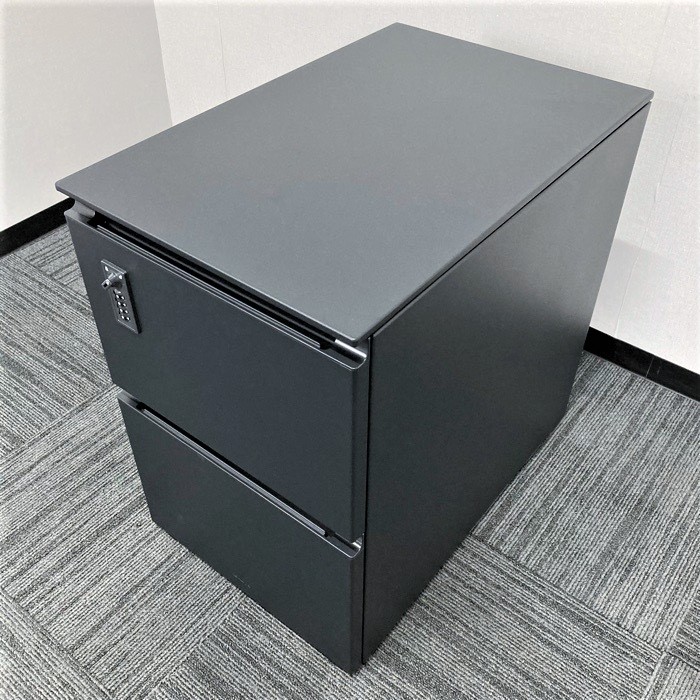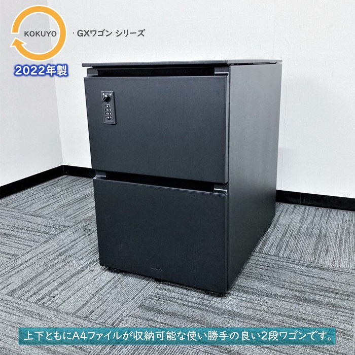 コクヨ GXワゴンシリーズ 2段ワゴン SDM-GX46DA2E6AN W395×D602×H600 ブラック ダイヤル錠 2022年製 中古 ⑩