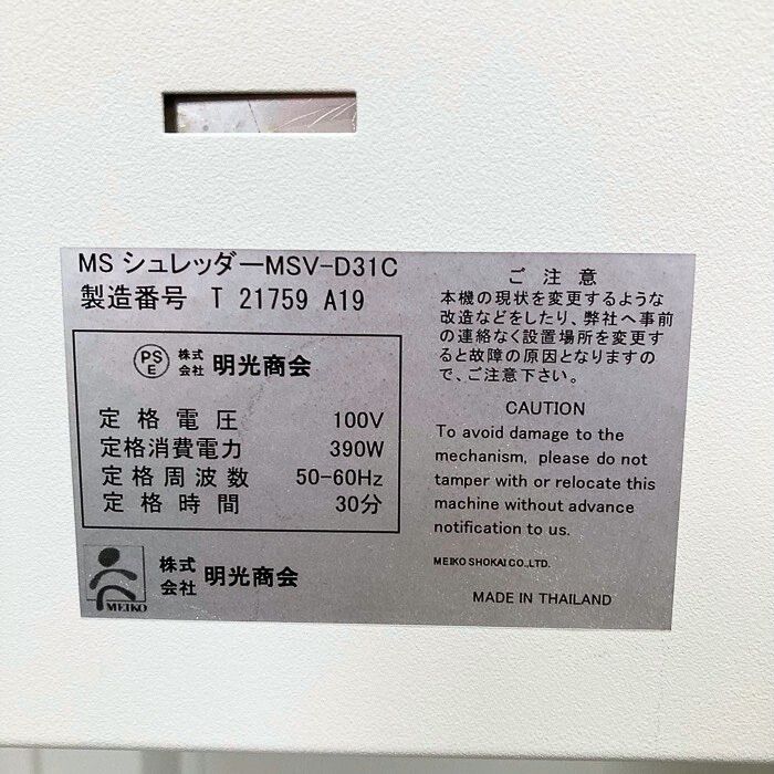 明光商会 MSシュレッダシリーズ オフィスシュレッダ MSC-D31C W700×D300×H700 ホワイト 2018年製 中古 ⑩