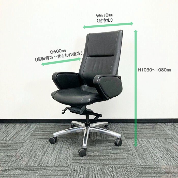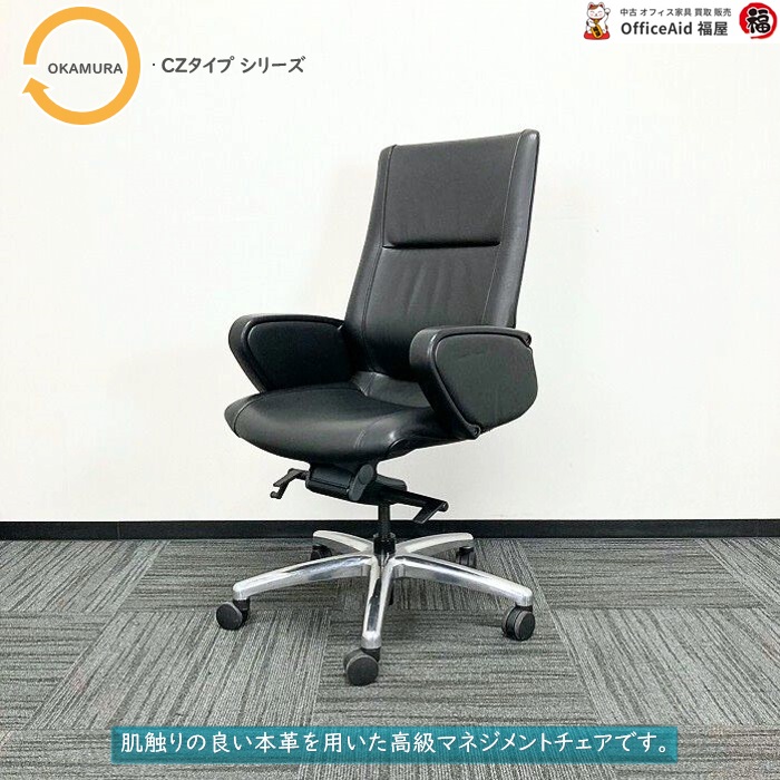 オカムラ CZタイプシリーズ マネジメントチェア CE69CZ P558 本皮 ブラック 2015年製 中古 ⑩