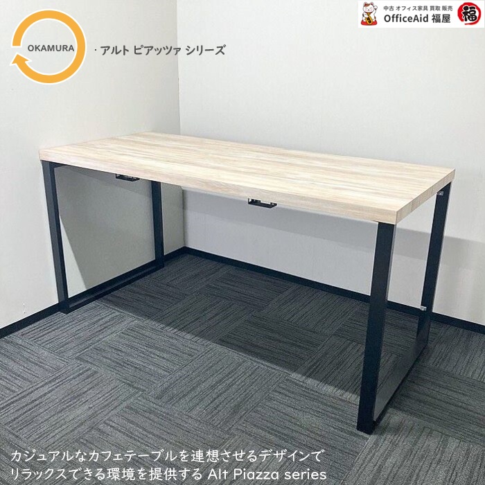 オカムラ アルトピアッツァシリーズ カウンターテーブル MB613A NW74 W2000×D900×H1000 天板:ビンテージエルム/脚:ブラック 2018年製 中古 ※SALE品
