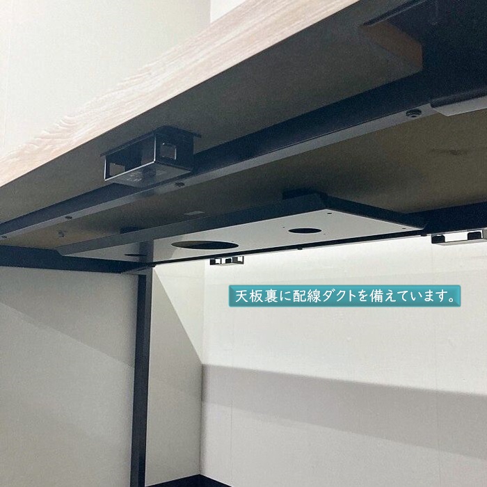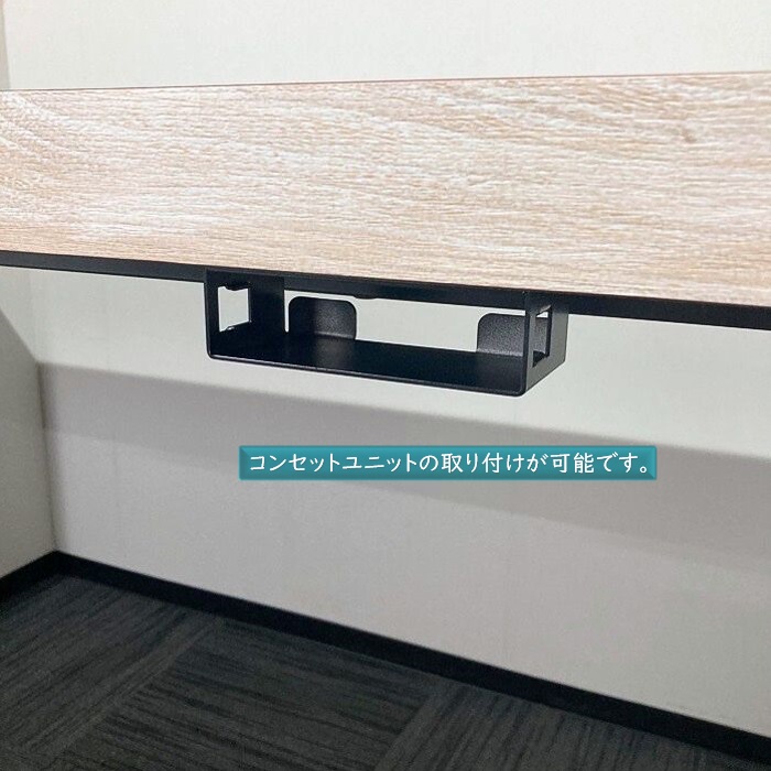 コンセントユニット取り付けられる金具や天板裏に配線ダクトも付いており、ノートPCやモバイルにも対応しております。