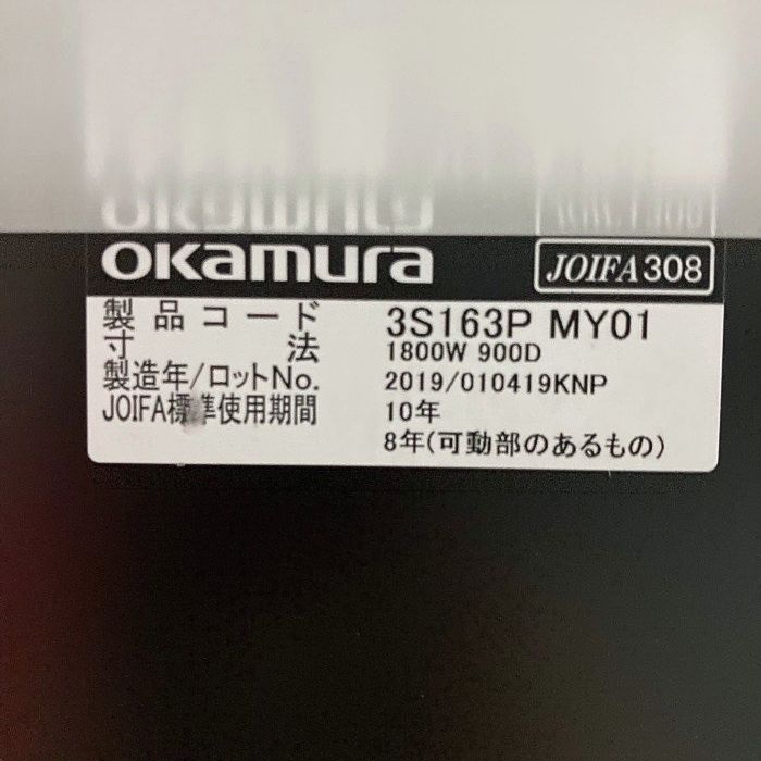 オカムラ スイフトシリーズ 天板電動昇降ミーティングテーブル 3S163P MY01 W1800×D900×H700~1250 ホワイト 2019年製 中古 ※SALE品
