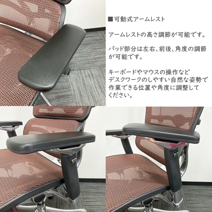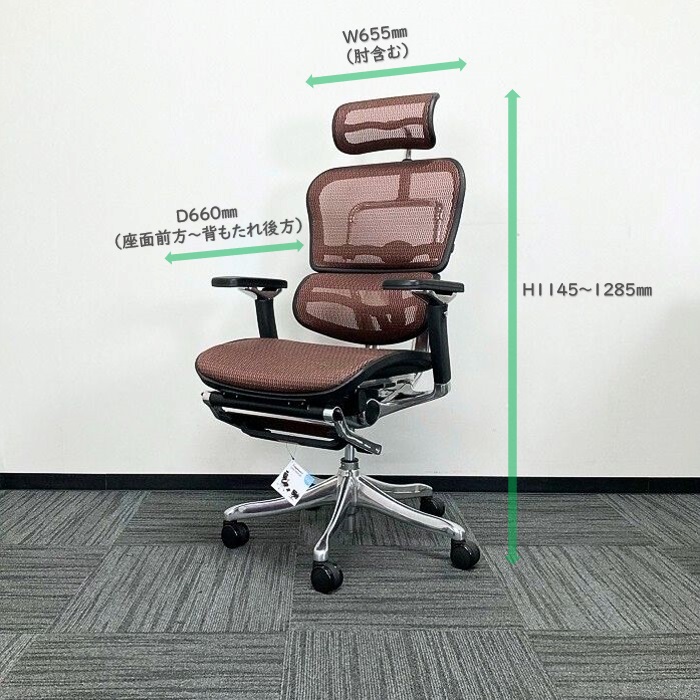 関家具 エルゴヒューマンプロオットマンシリーズ オフィスチェア EHP-LPL RD(KM12) ヘッドレスト付き オットマン内蔵 レッド 2021年製 未使用品