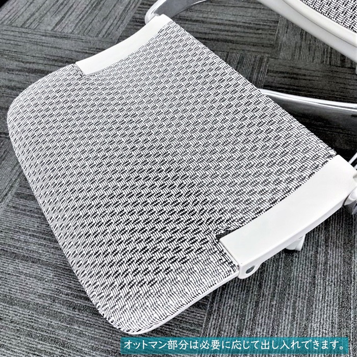 業務に集中される場合は前傾チルト姿勢で使用し、リラックスしたい時はオットマンを使って、ON/OFFの切り替えをスムーズに行え、より効率的にデスクワークを行えます。