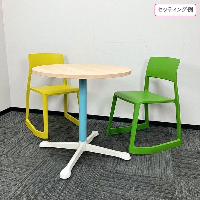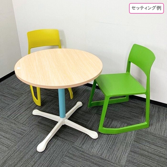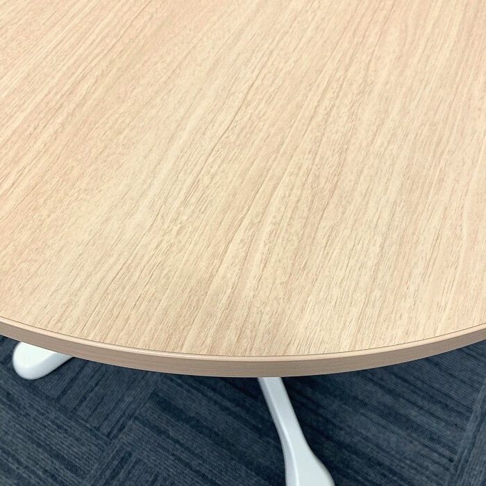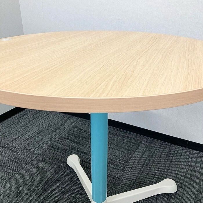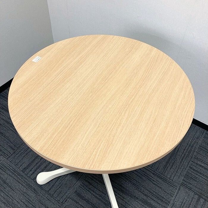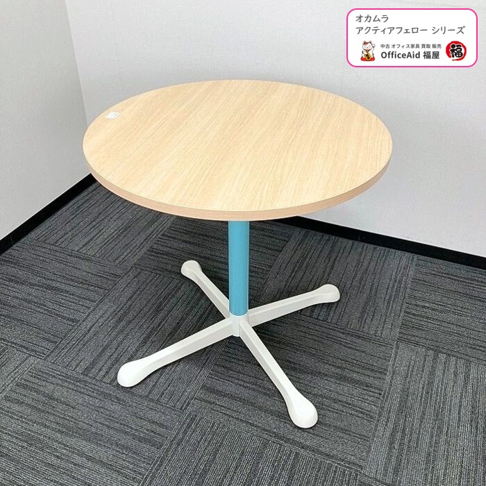 オカムラ アクティアフェローシリーズ 丸テーブル 93N11E MK37 φ750×H720 天板:ネオウッドライト/支柱:セージ/脚:ホワイト 2018年製 中古 ※SALE品