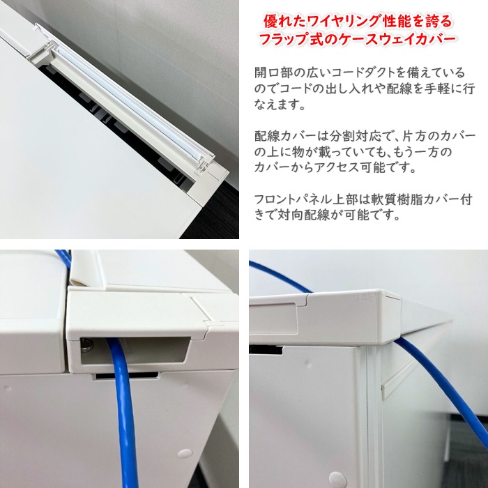 片手で手軽に開閉可能なフラップ式のケースウェイカバーを採用し、配線の美しさと効率を追求したスカエナ Ktypeシリーズの平デスクです。