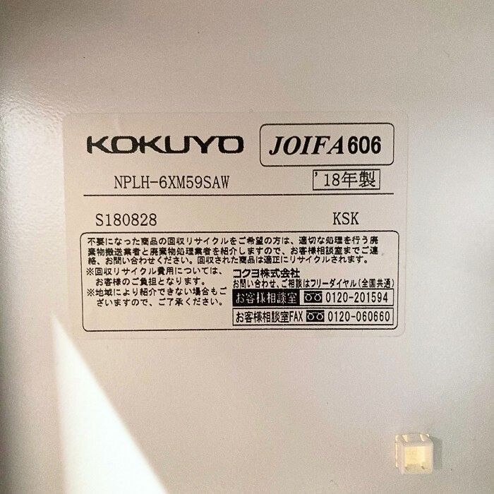 コクヨ イノンシリーズ 6人用パーソナルロッカー NPLH-6X59SAWN W900×D450×H1190 天板:ホワイトナチュラル/本体:ホワイト 2018年製 中古  ※SALE品