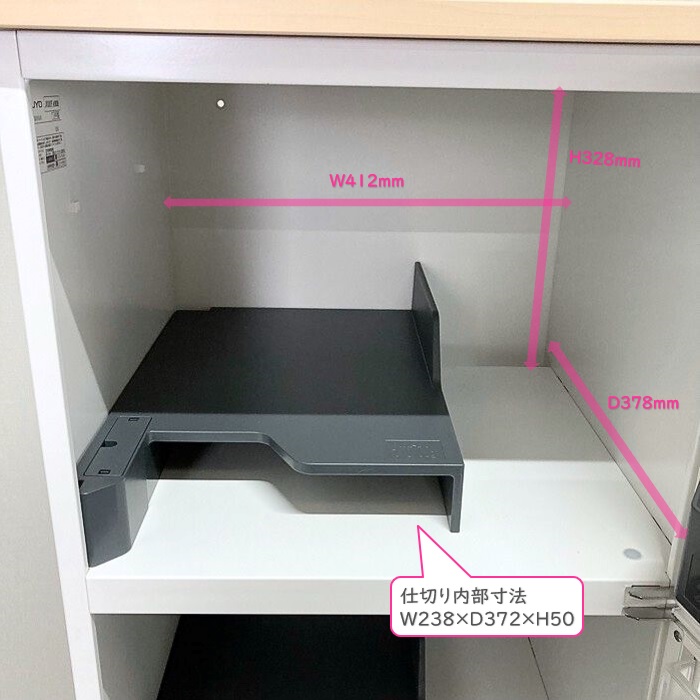 A4タテと横が同時収納できるトレータイプで、仕切り下のスペースには13インチ程度のノートPCやタブレットなどが収納可能です。