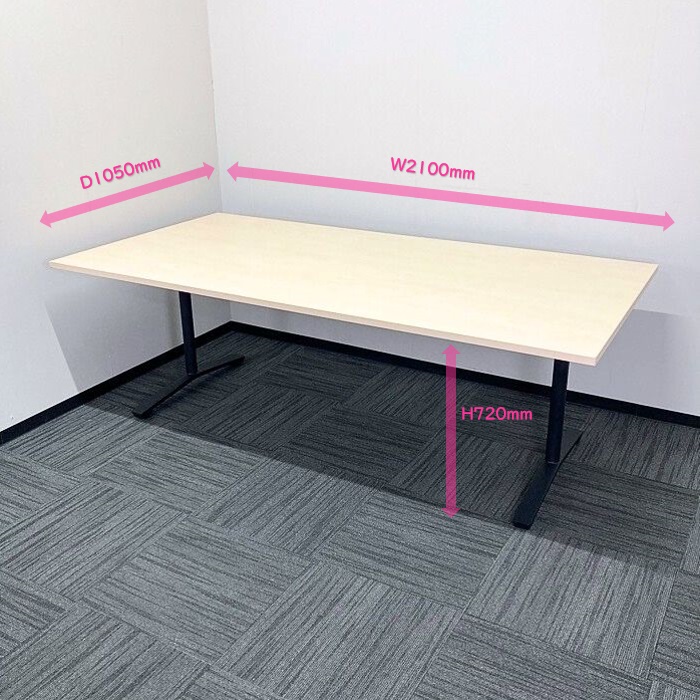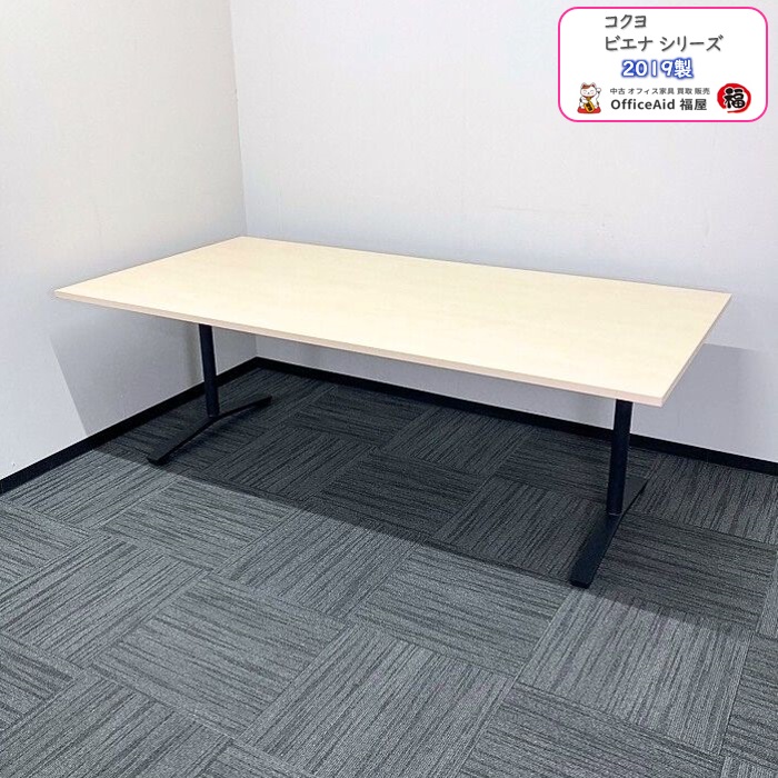 コクヨ ビエナシリーズ 大型会議用テーブル MTT-V211M10 W2100×D1050×H720 天板:ホワイトナチュラル/脚:ブラック 2019年製 中古 ⑩