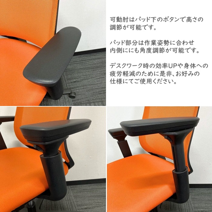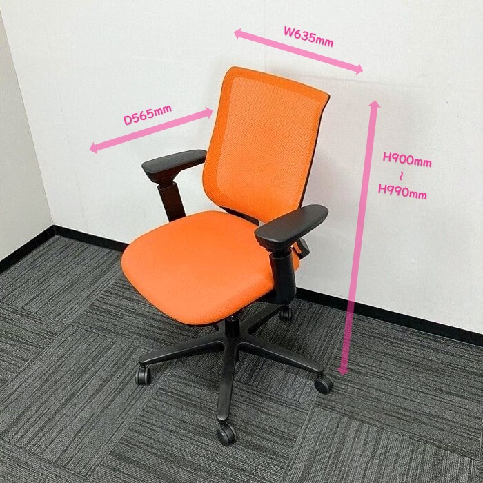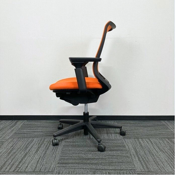 コクヨ ミトラチェアシリーズ オフィスチェア CRSG2900E 可動肘付き ブラックフレーム タンジェリン色 2019年製 中古 ➉