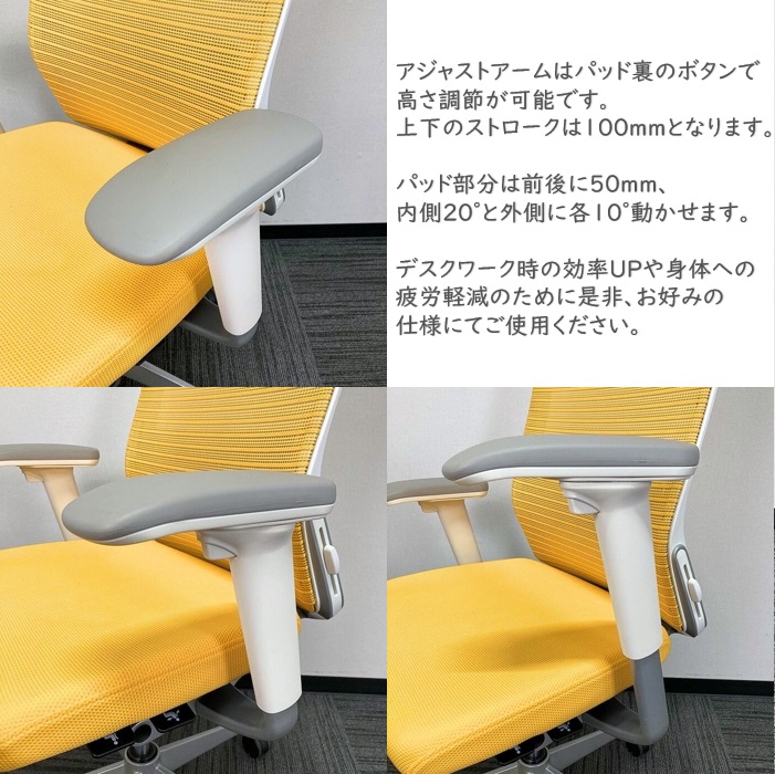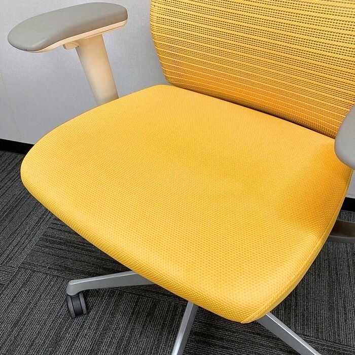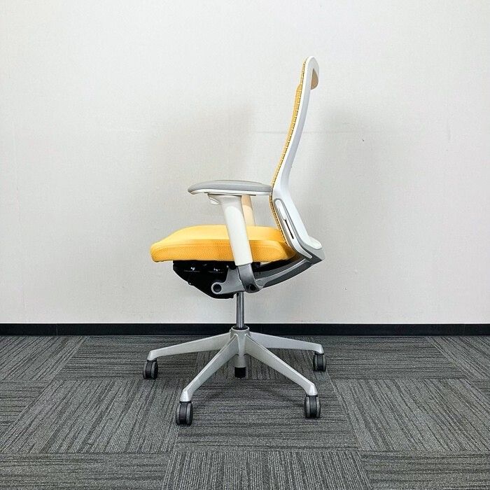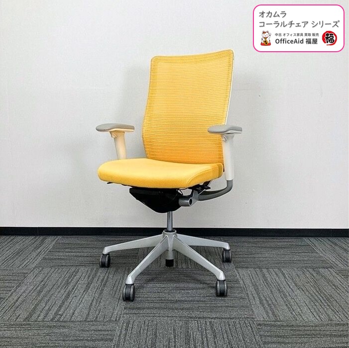 オカムラ コーラルチェアシリーズ オフィスシーティング CQ85GZ FSH6 ハイバック アジャストアーム ランバサポート付き マンゴーイエロー 2013年製 中古