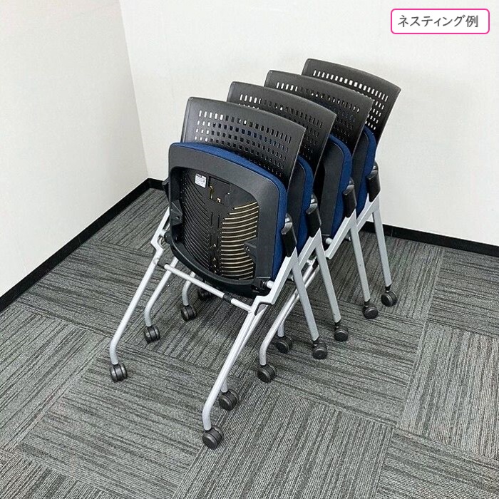 イトーキ モノンチェアシリーズ ネスティングチェア KLD210GB-Z5T1B2 背:ブラック/座ネイビーブルー 2017年製 中古 ※SALE品