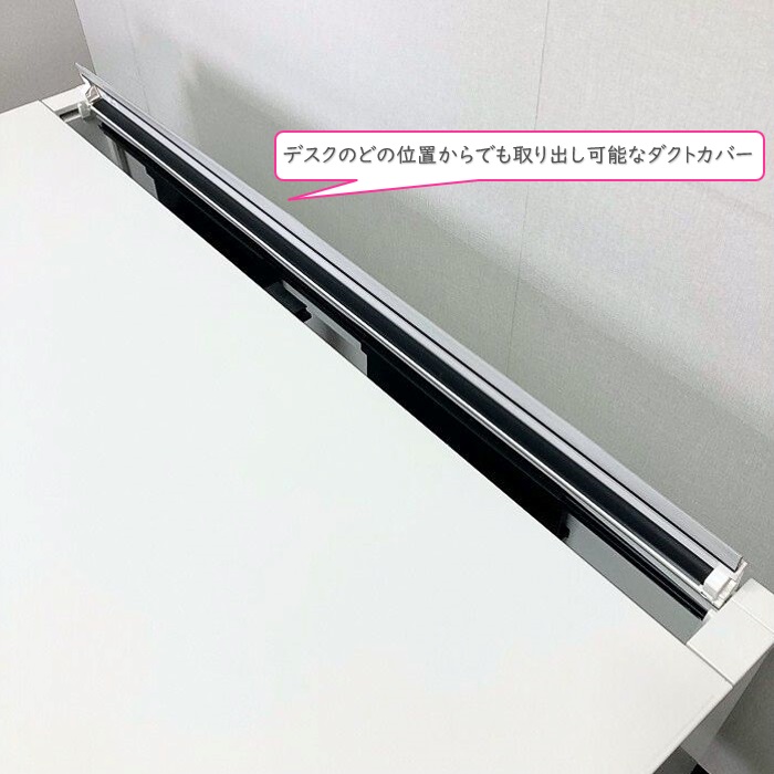 天板後方に配線ダクトカバーがついており、PCや電話の配線をまとめて整理できます。