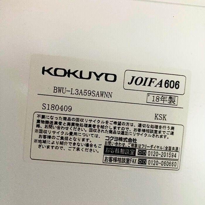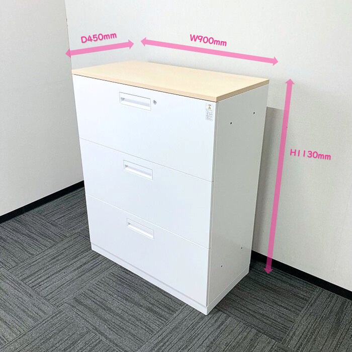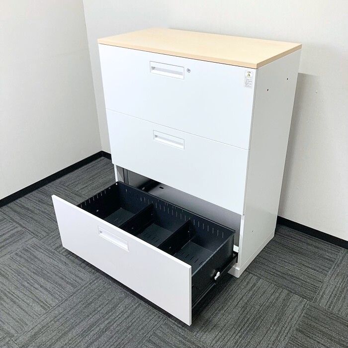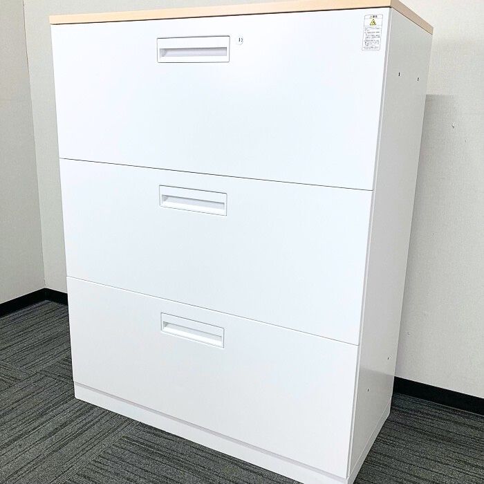 コクヨ エディアシリーズ 3段ラテラルキャビネット BWU-L3A59SAWNN W900×D450×H1130 天板:ホワイトナチュラル/本体:ホワイト2018年製 中古 ⑩