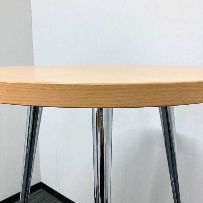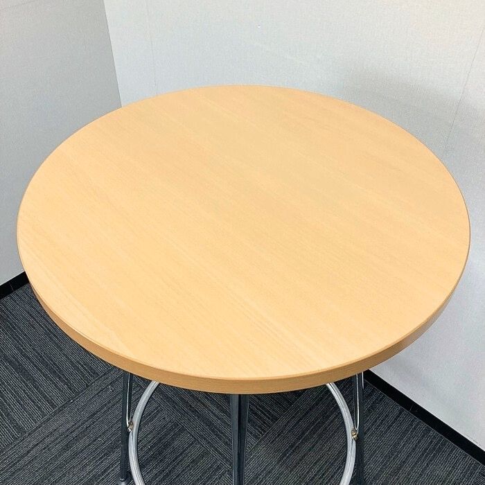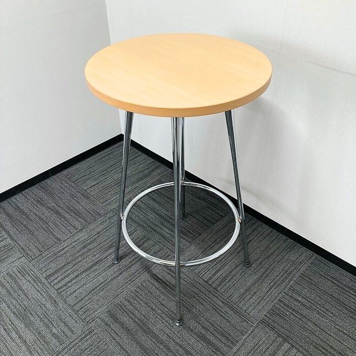 コクヨ イートインシリーズ ハイテーブル LTT-337P6 Φ600×H1000 天板:ナチュラル/本体:シルバー 2009年製 中古 ※SALE品