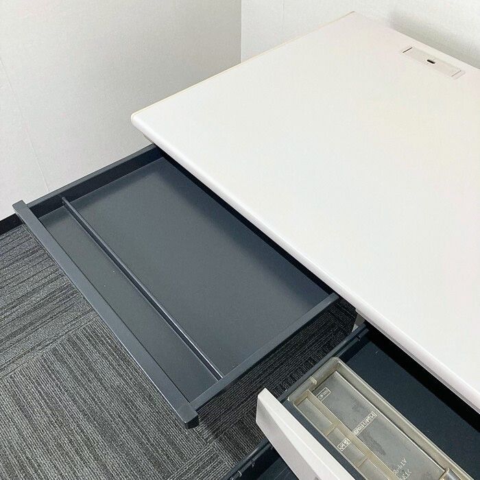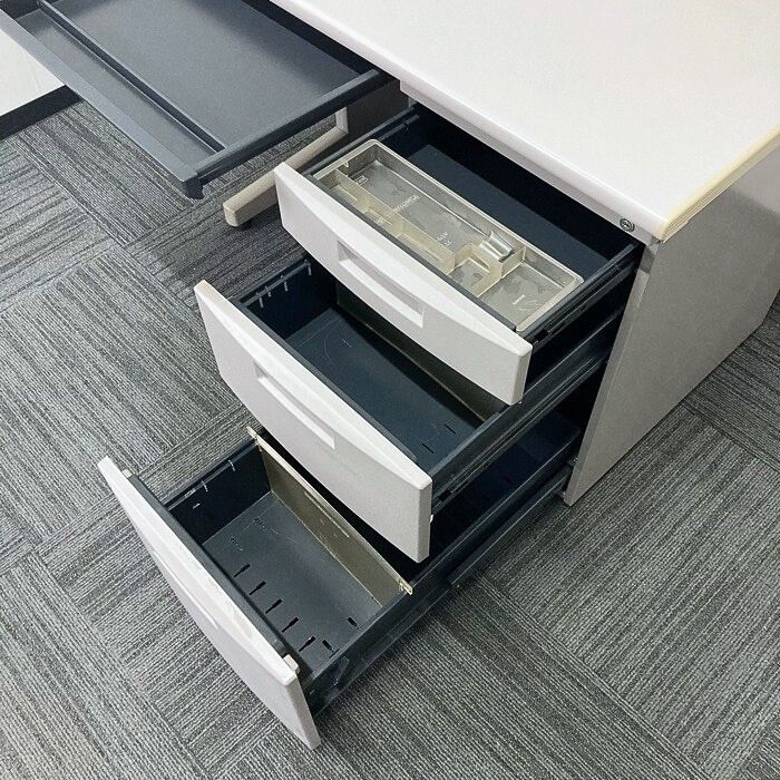 幅1000mmのコンパクトサイズですが収納箇所はセンター引出しと3段右袖があり結構な収納力がございます。