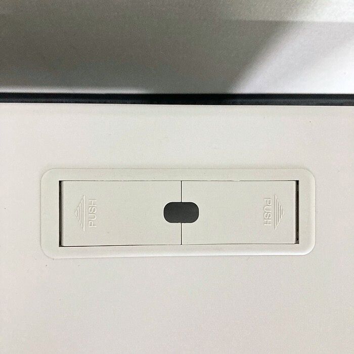 天板後方には配線孔が2箇所ありPCや電話線の収納、整理が可能です。