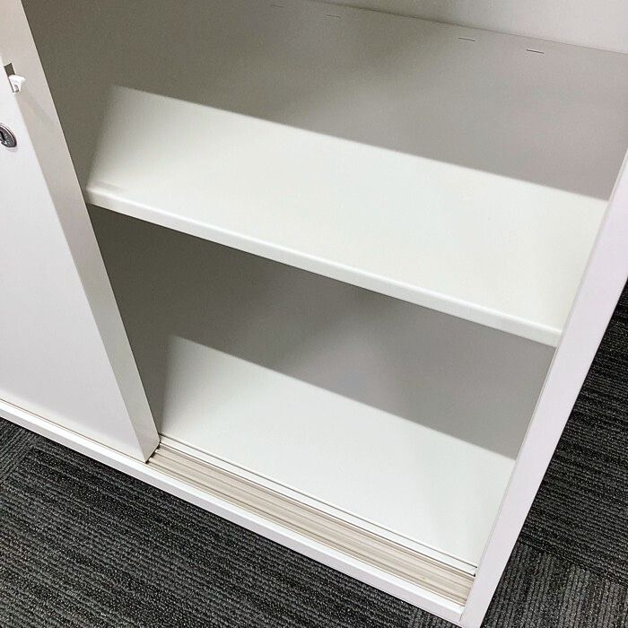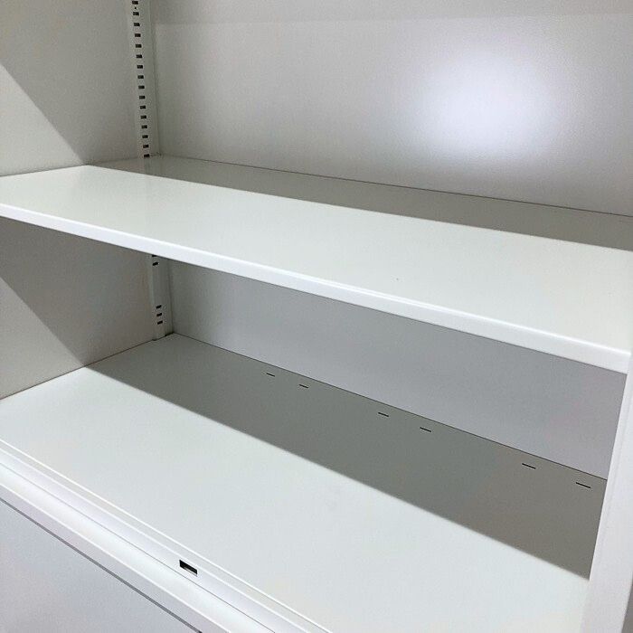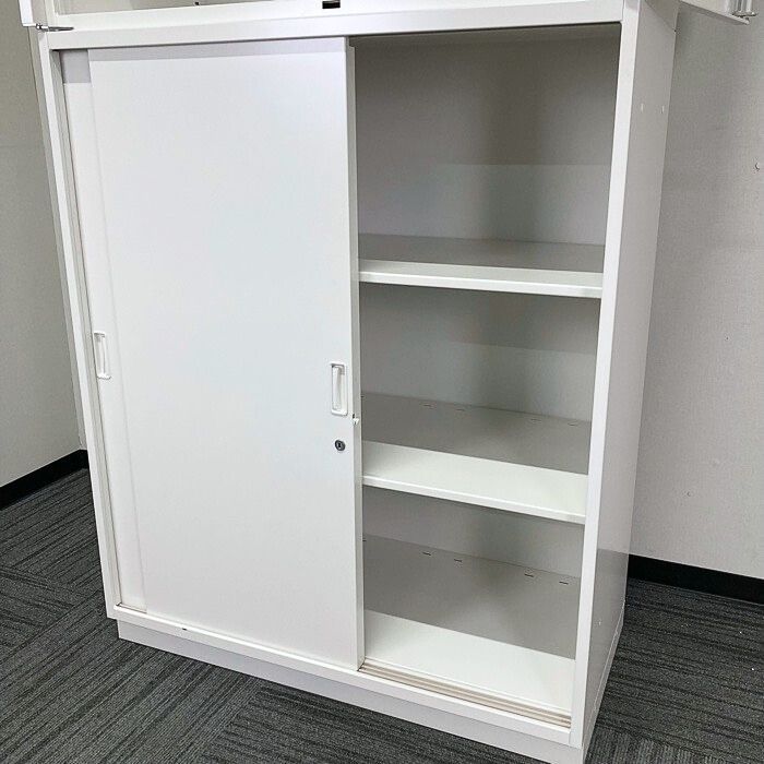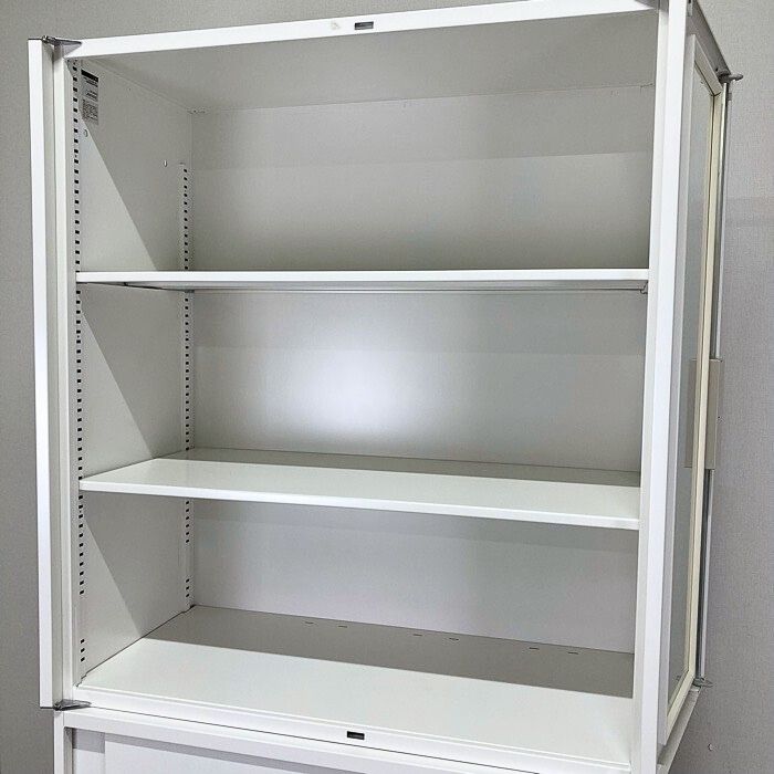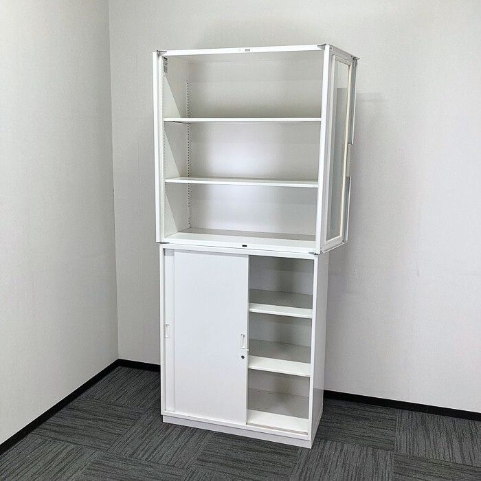 イトーキ シンラインシリーズ 両開き扉書庫(ガラス戸)+引違い扉書庫  W900×D450×H2136 ホワイト 2015年製 中古 ⑩