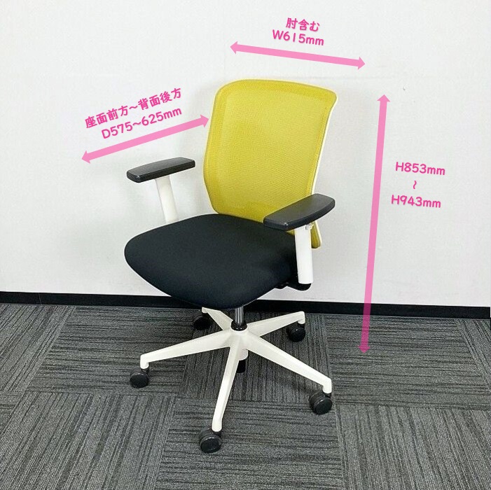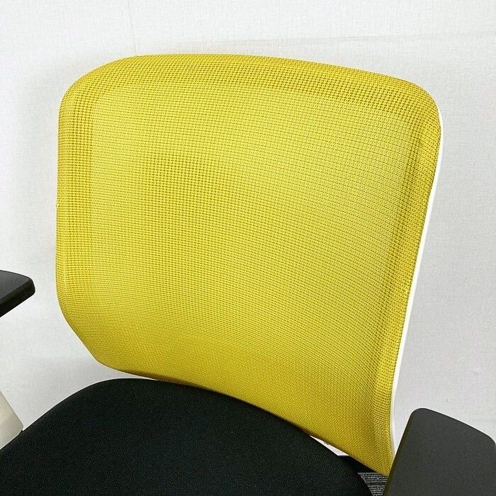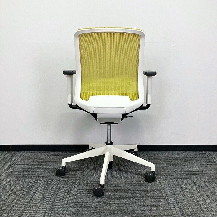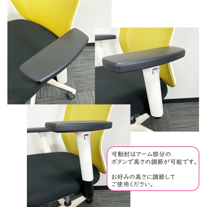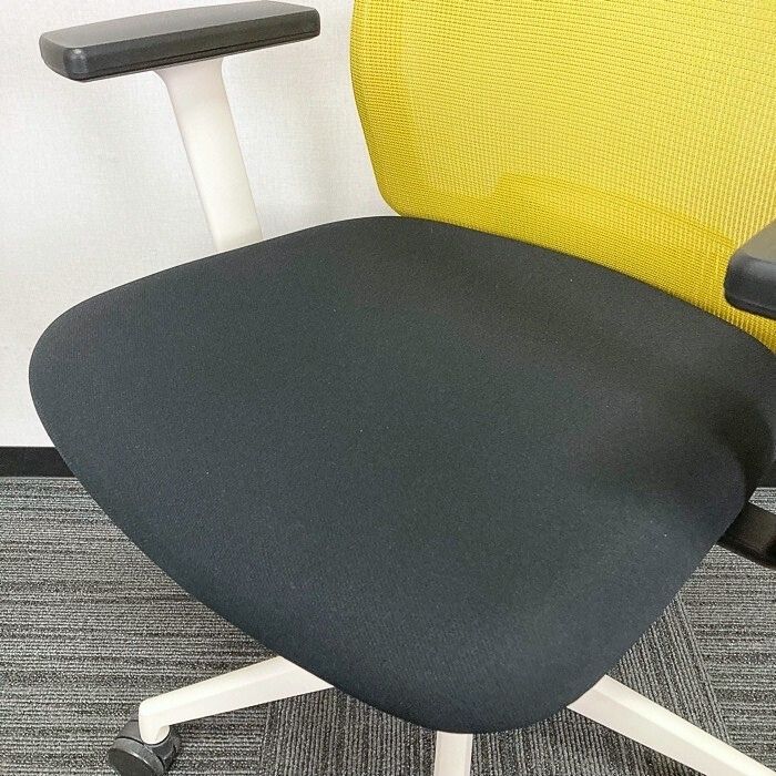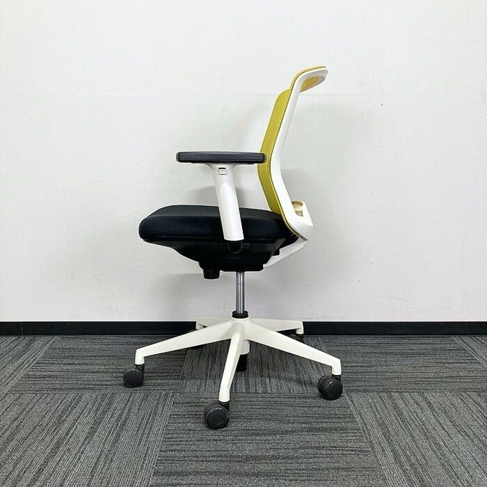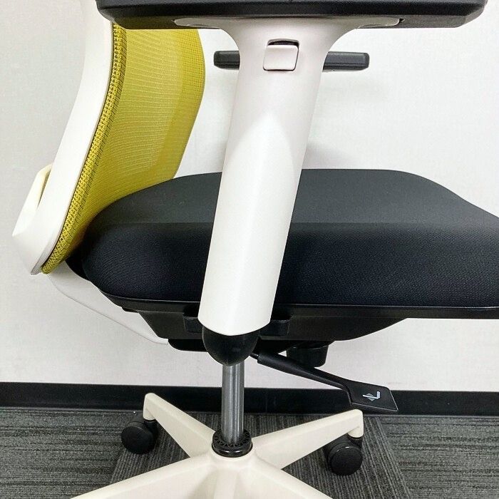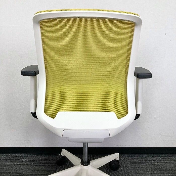 内田洋行 カリッサチェアシリーズ オフィスチェア ローバック 可動肘 ホワイトシェル 背:リーフグリーン/座:ブラック 2018年製 中古 ⑩