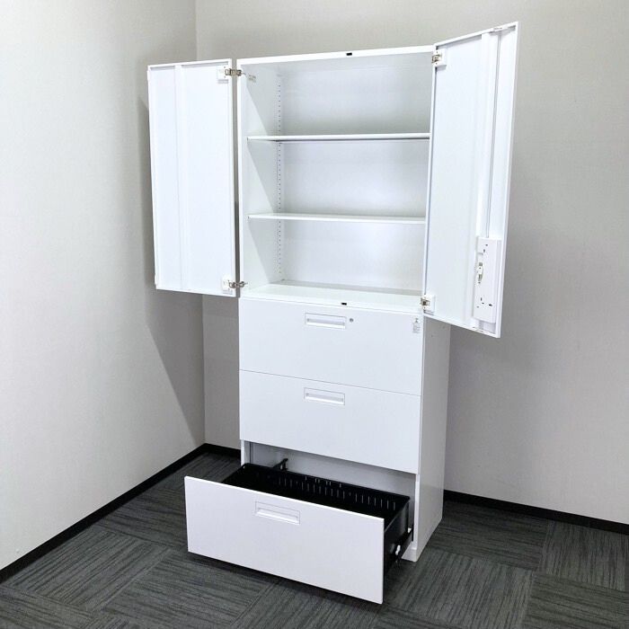 コクヨ エディアシリーズ 両開き書庫+3段ラテラル W900×D450×H2160 ホワイト 2020年製 中古 ⑩