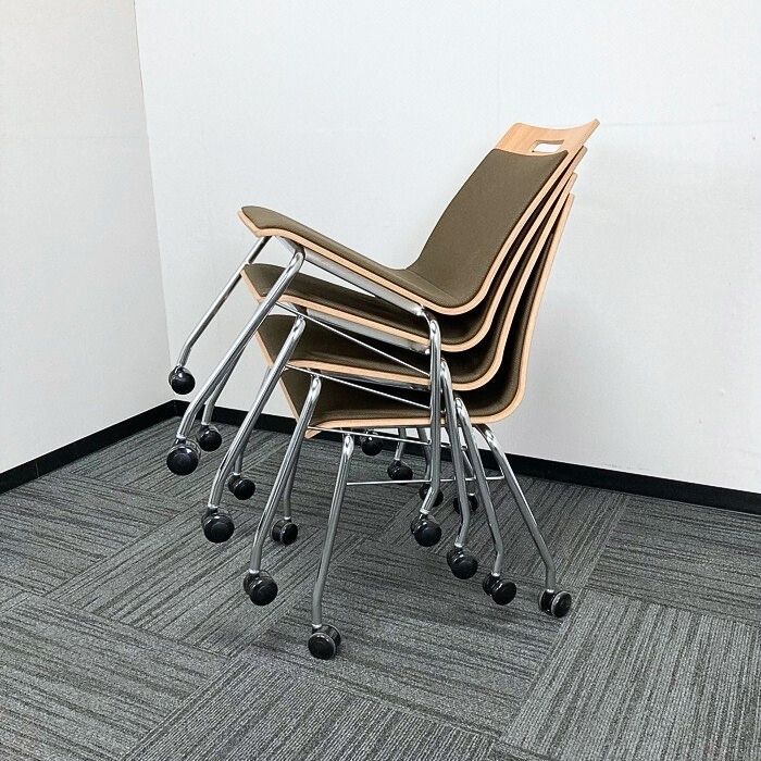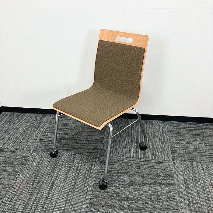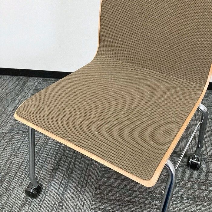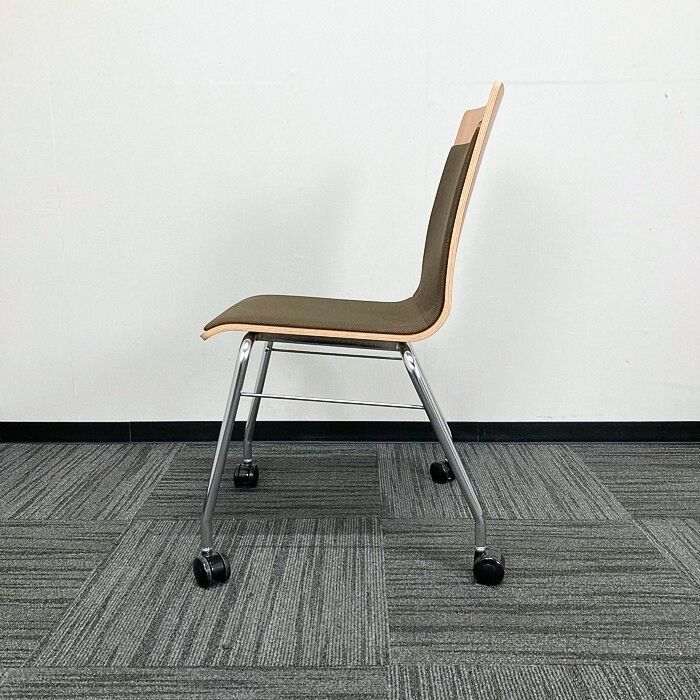 オカムラ モノスチェアシリーズ ミーティングチェア 9327GX MS98 本体:ネオウッドミディアム/背座:ブラウン 2019年製 中古 ⑩