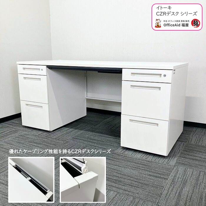 イトーキ CZRデスクシリーズ 両袖デスク CZR-167BB-W9W9 W1600×D700×H720 ホワイト 中古 ⑩